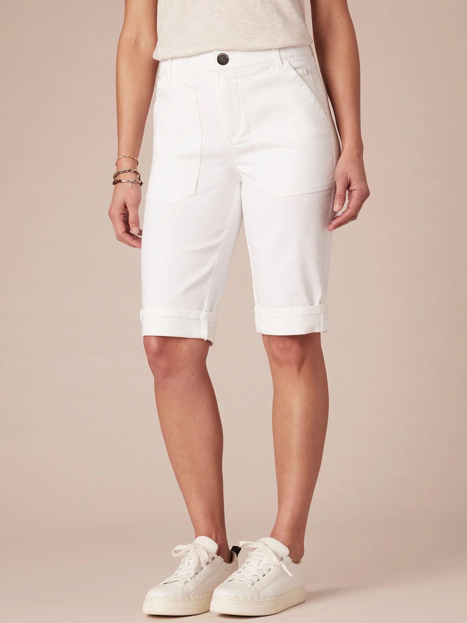 "Ab"solution High Rise Cuffed Denim Bermuda Short with Coin Pockets