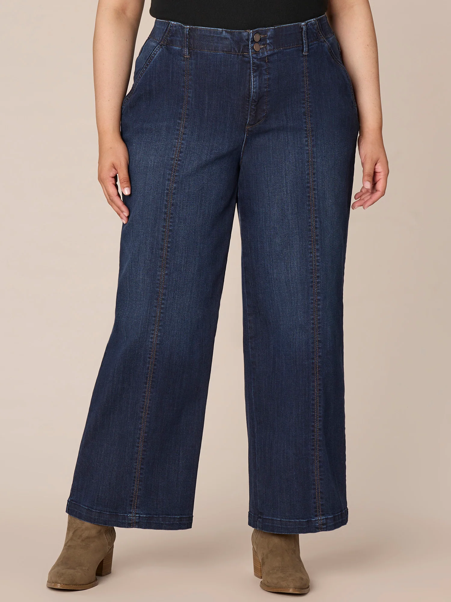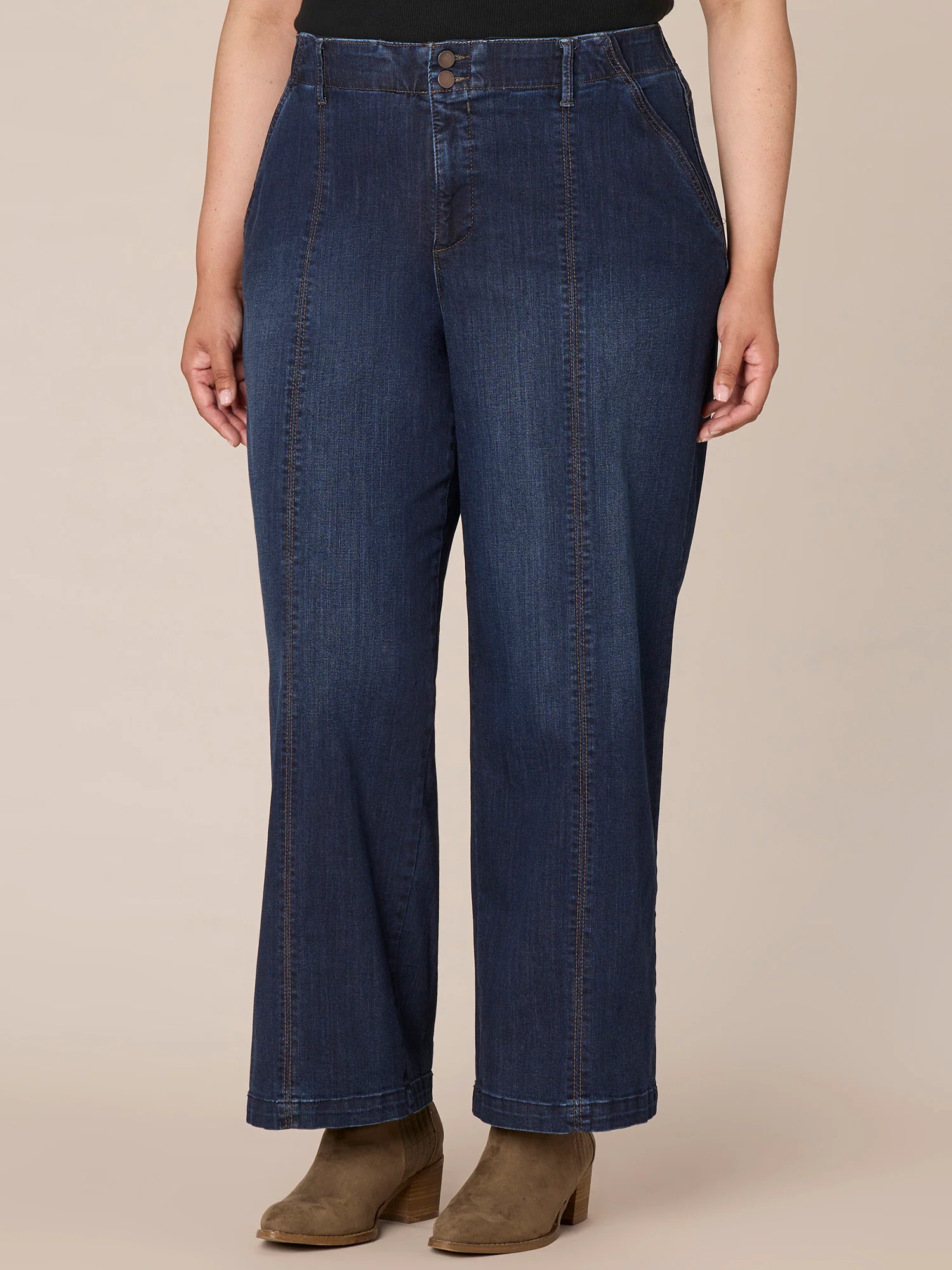 "Ab"solution Skyrise Wide Leg Plus Size Jeans with Center Front Seams