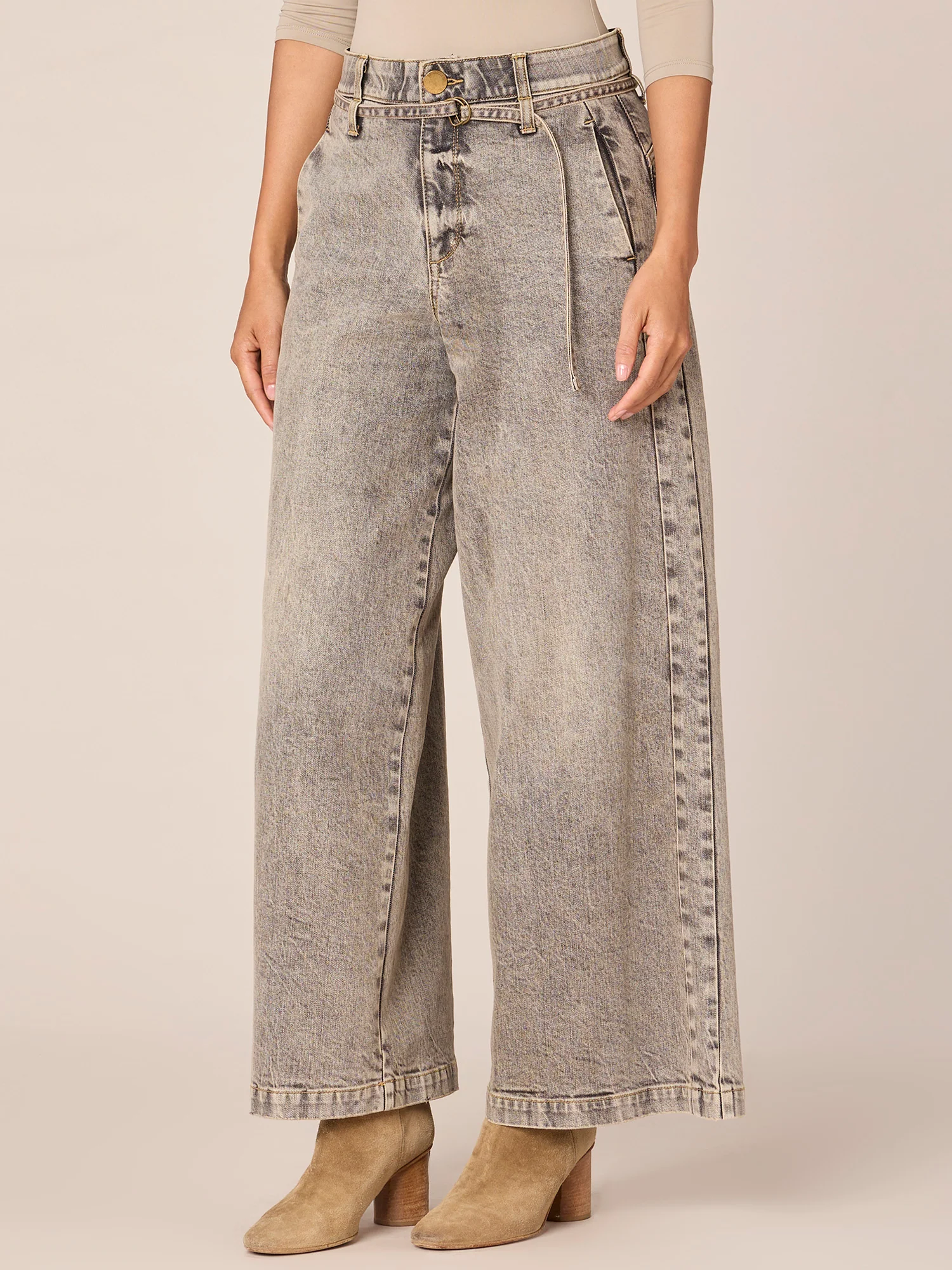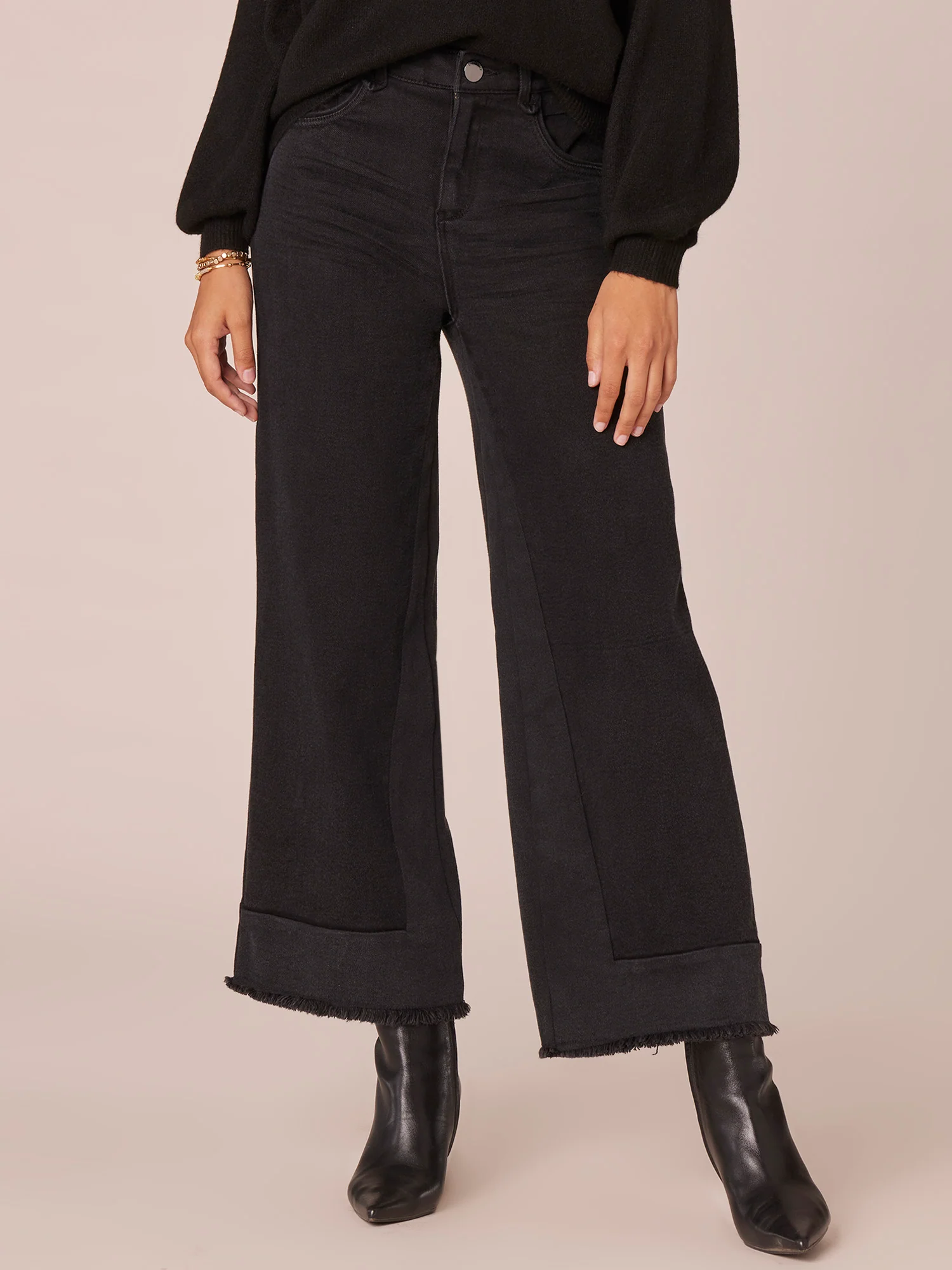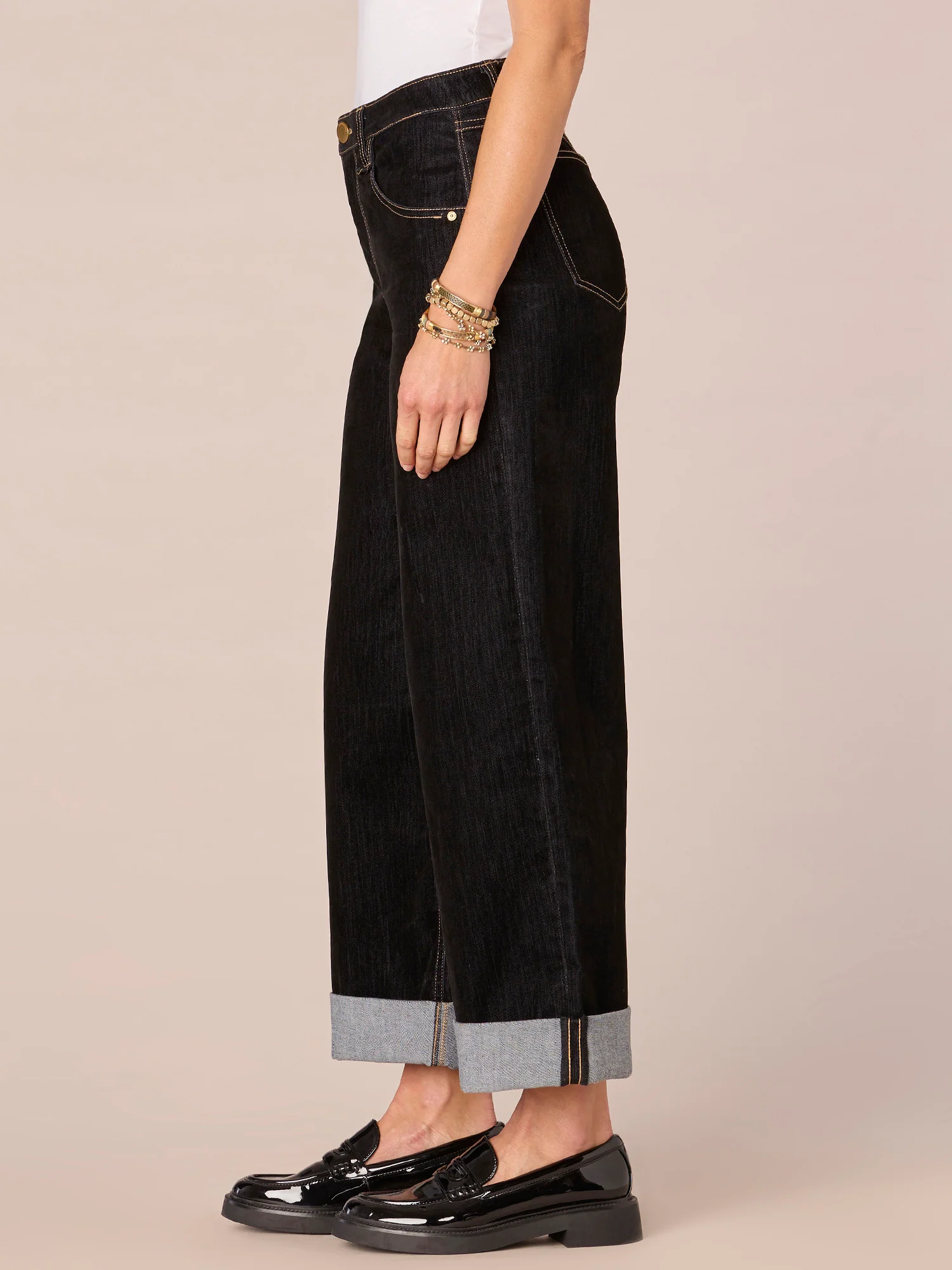 "Ab"solution High Rise Velvet Cuffed Double Peak Yoke Wide Leg Jeans