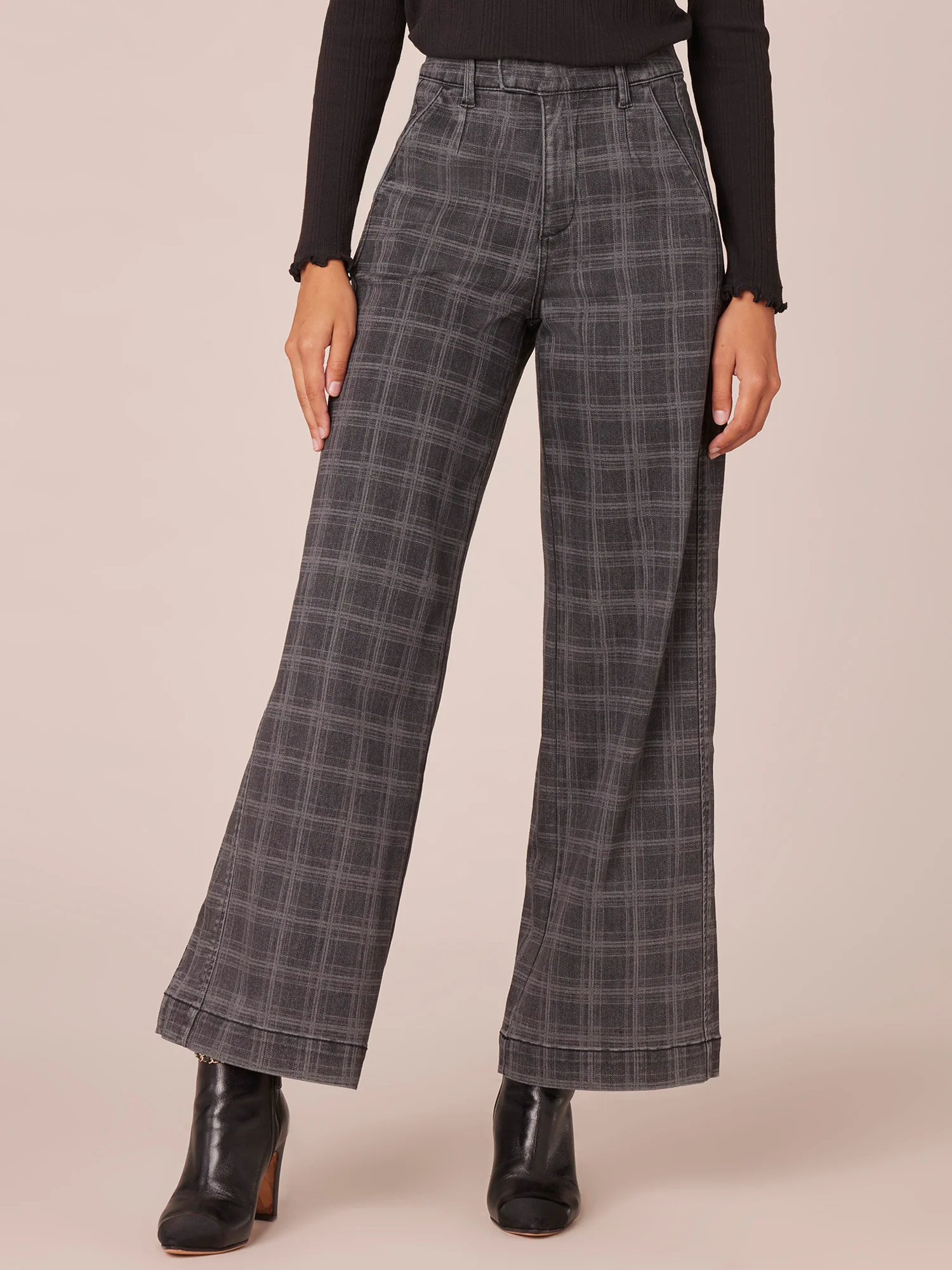 "Ab"solution Skyrise Side Panel Plaid Print Wide Leg Jeans