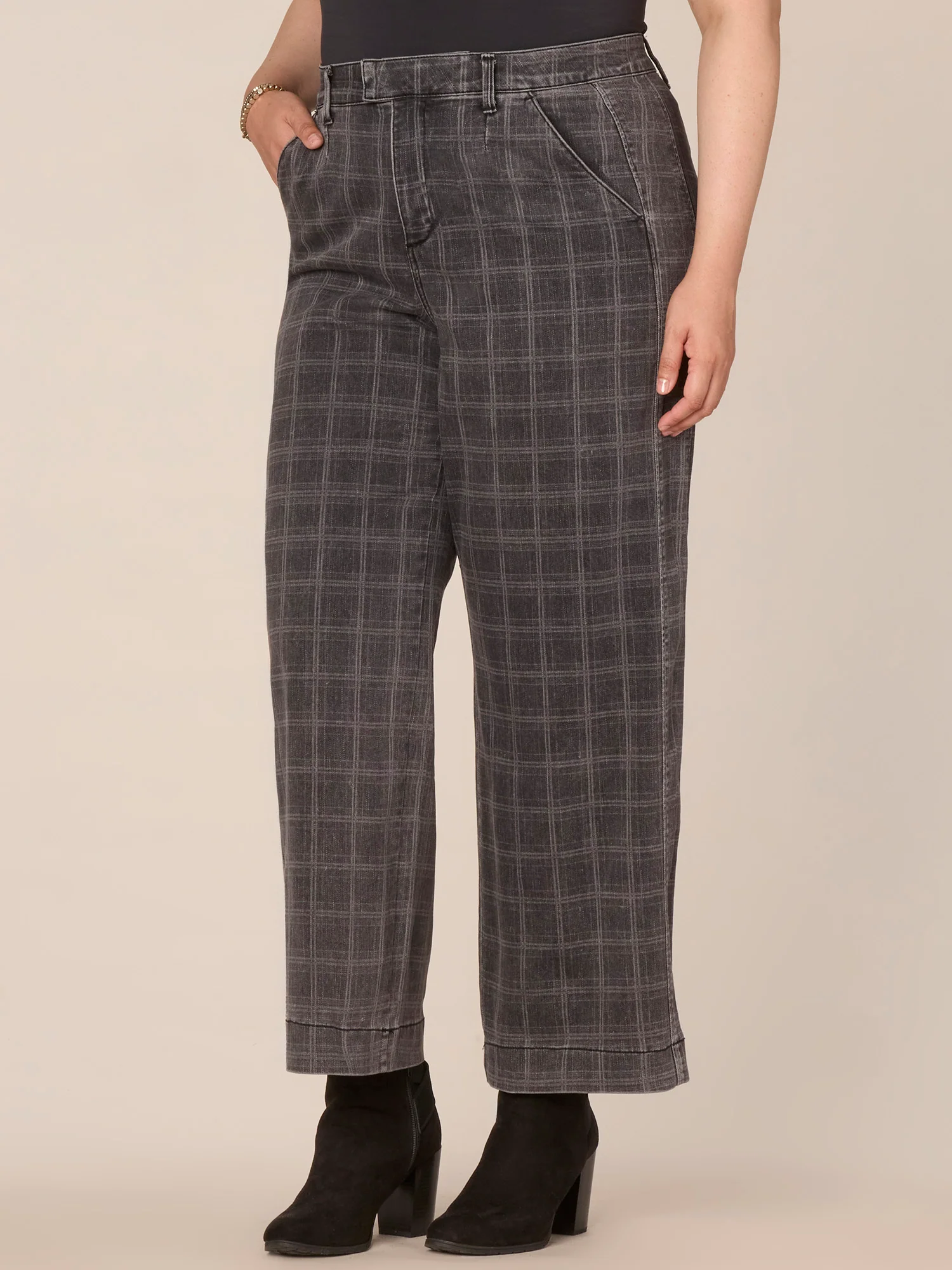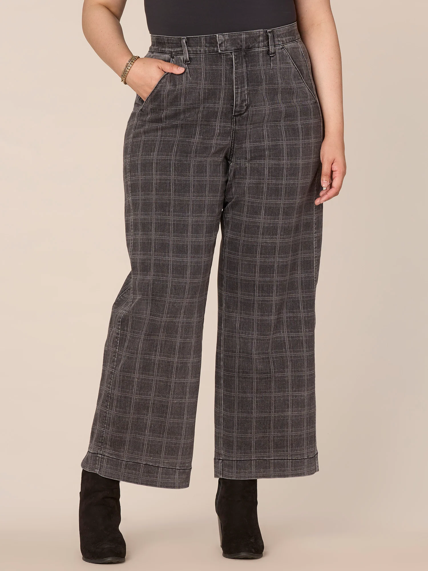 "Ab"solution Skyrise Extended Tab Plaid Print Wide Leg Plus Size Jeans