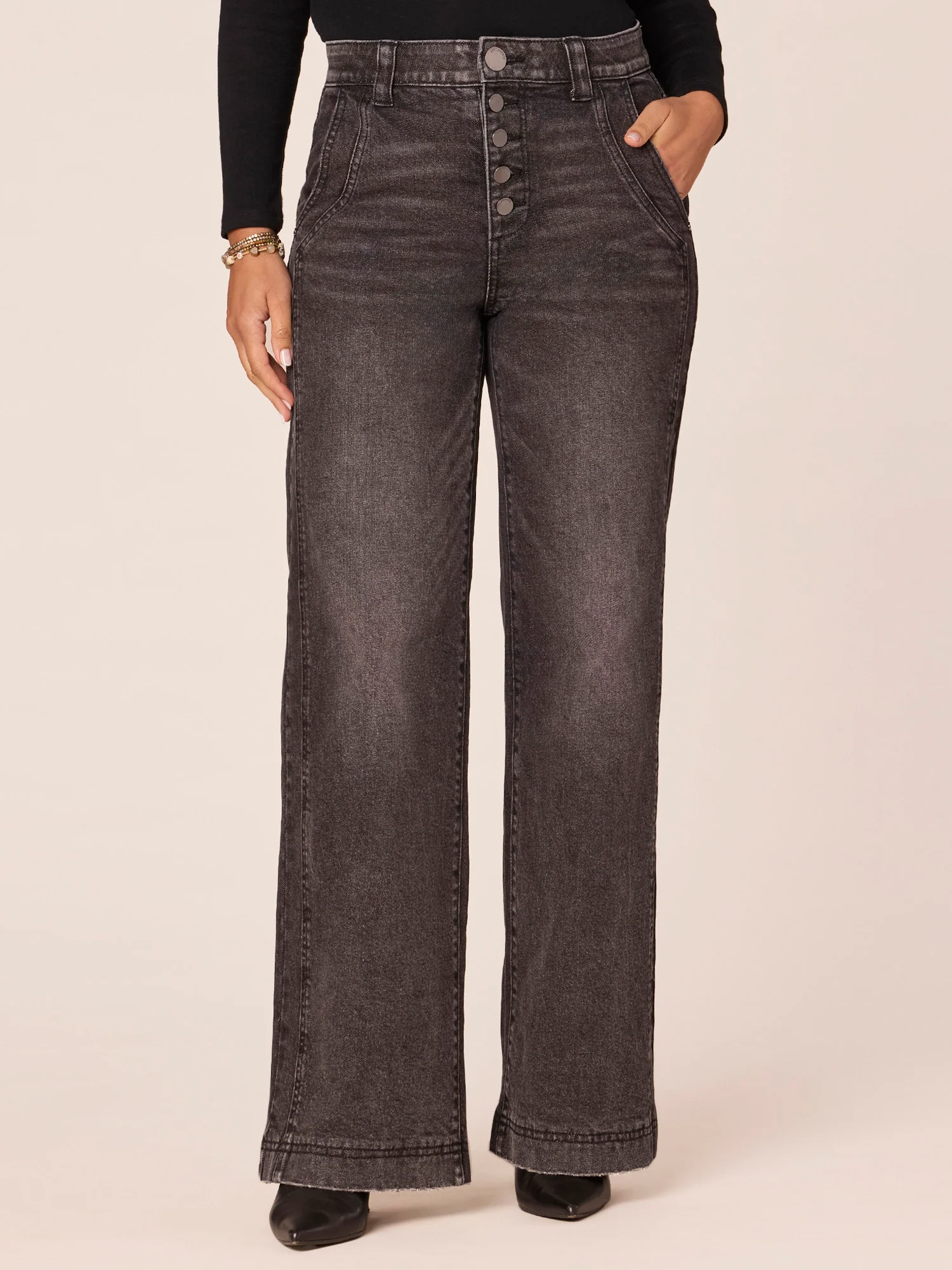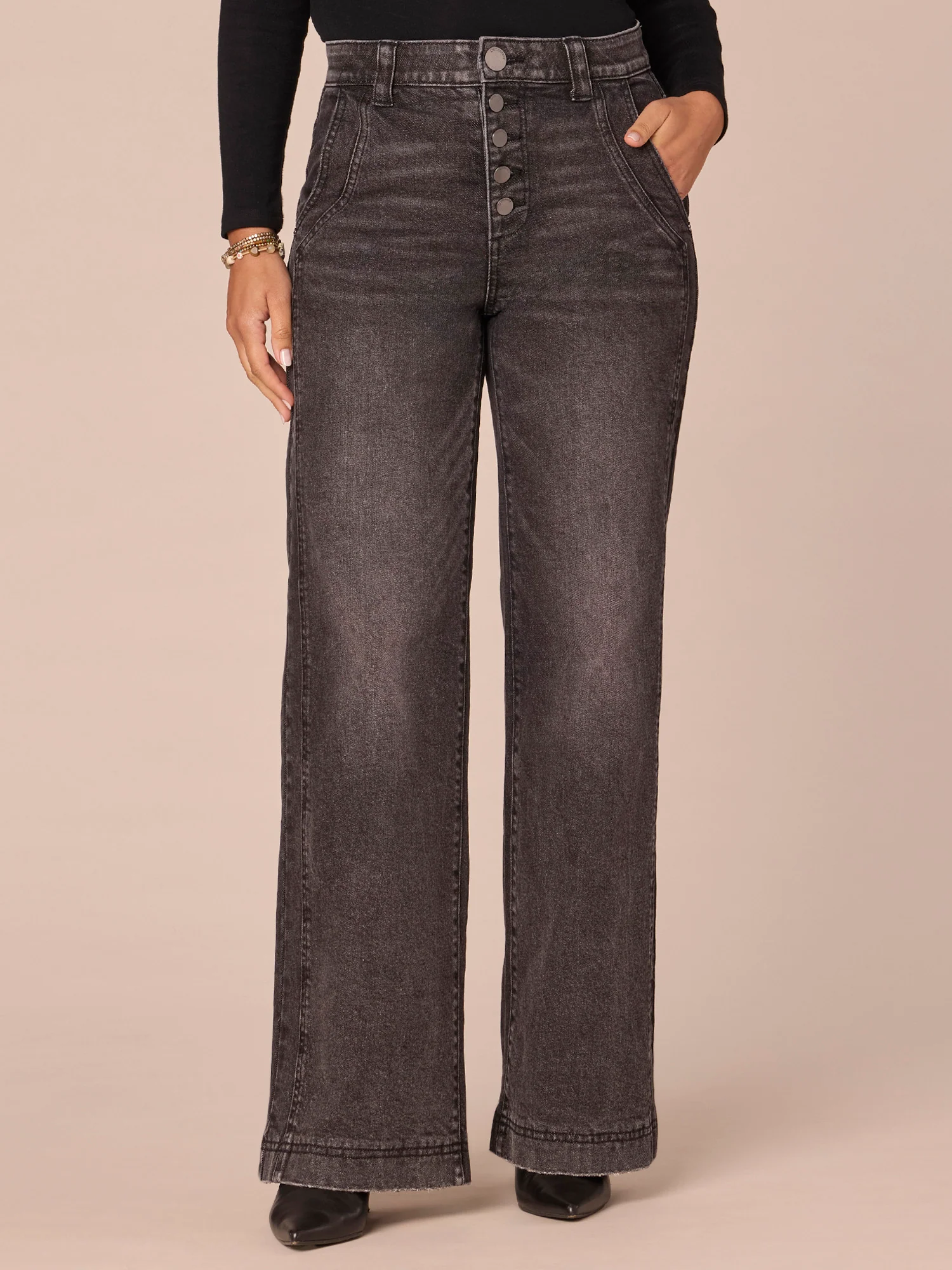 "Ab"solution Skyrise Front Panel Wide Leg Jeans with Button Fly