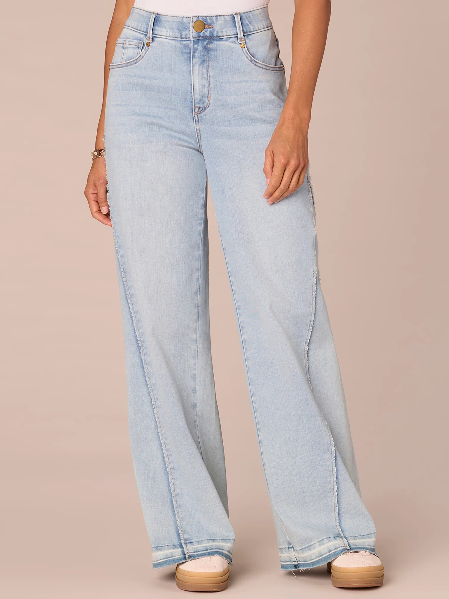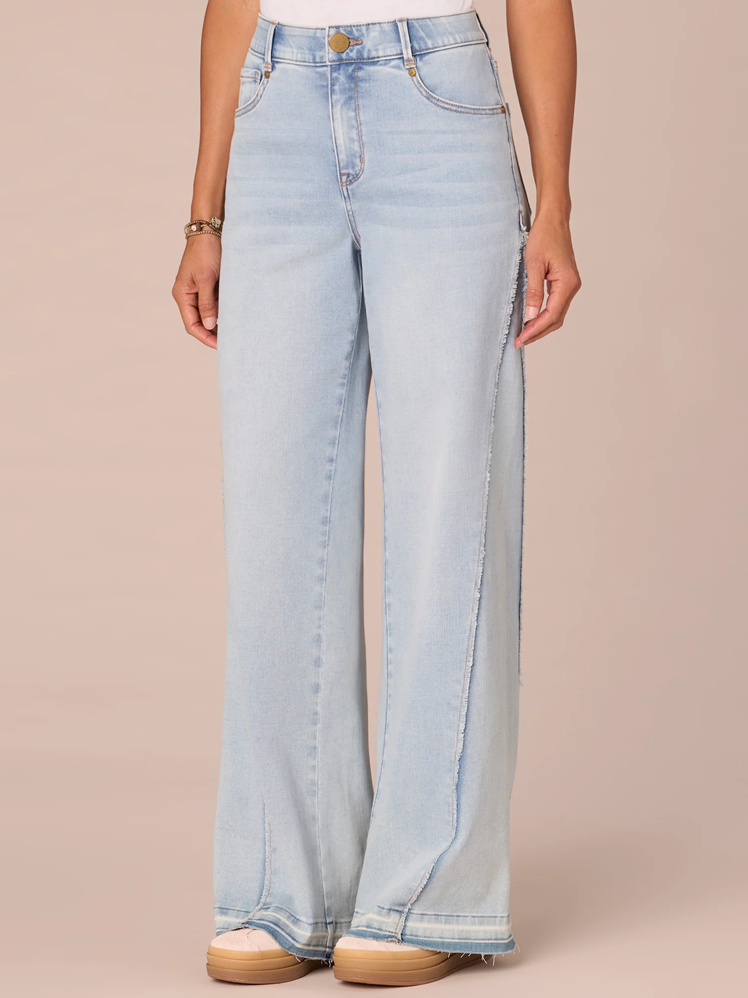 "Ab"solution Skyrise Diagonal Fray Panel Released Hem Wide Leg Jeans