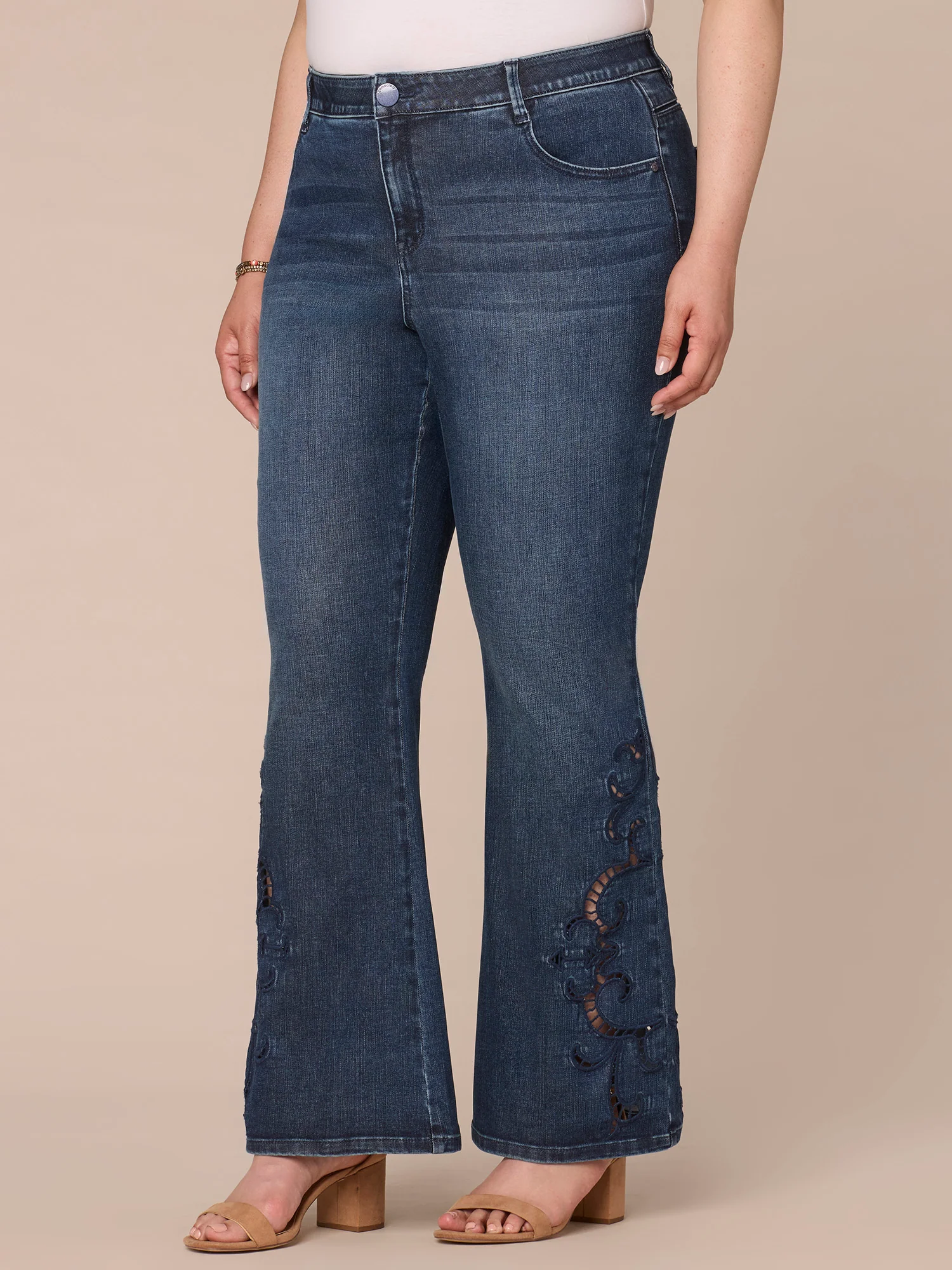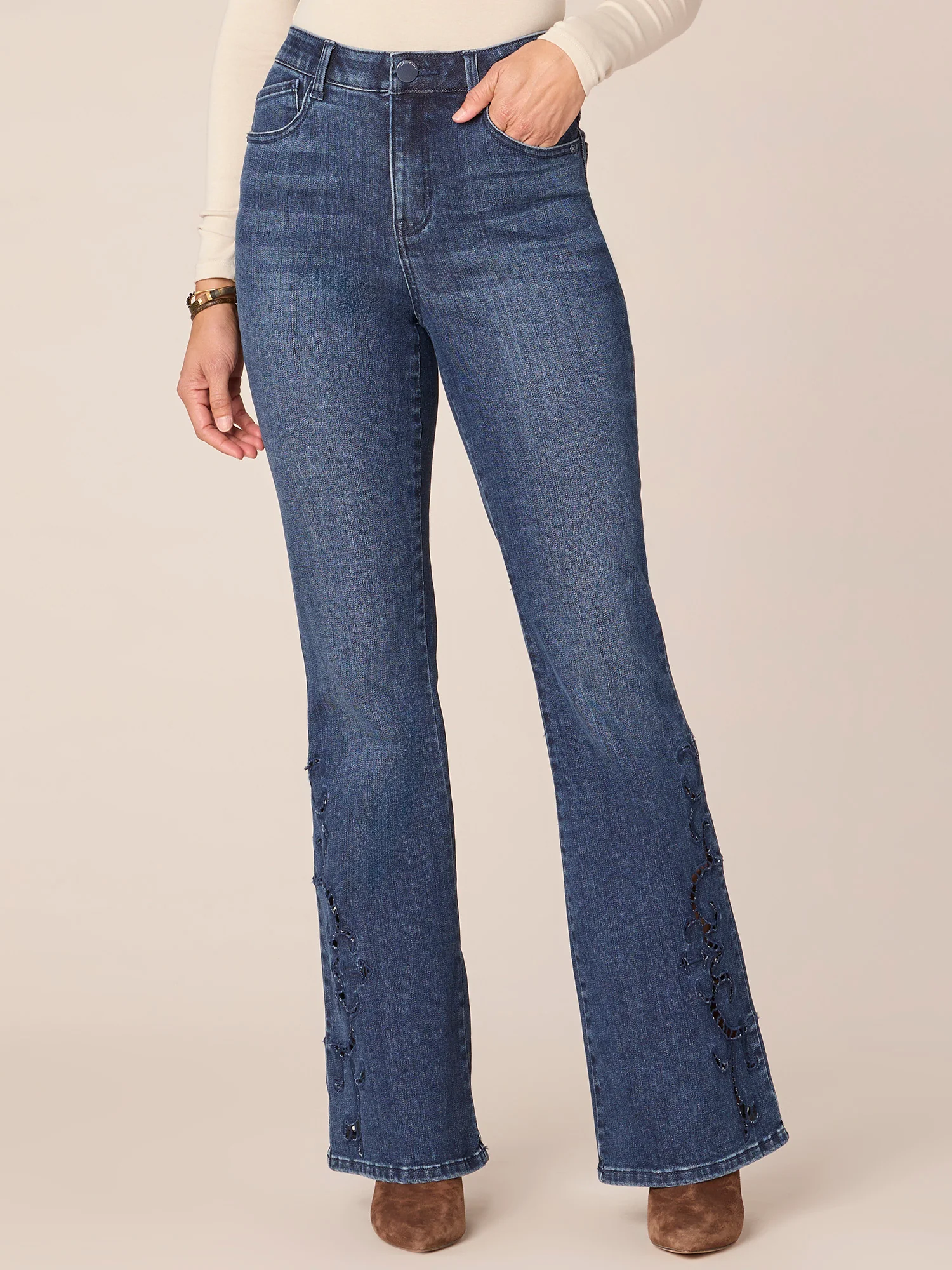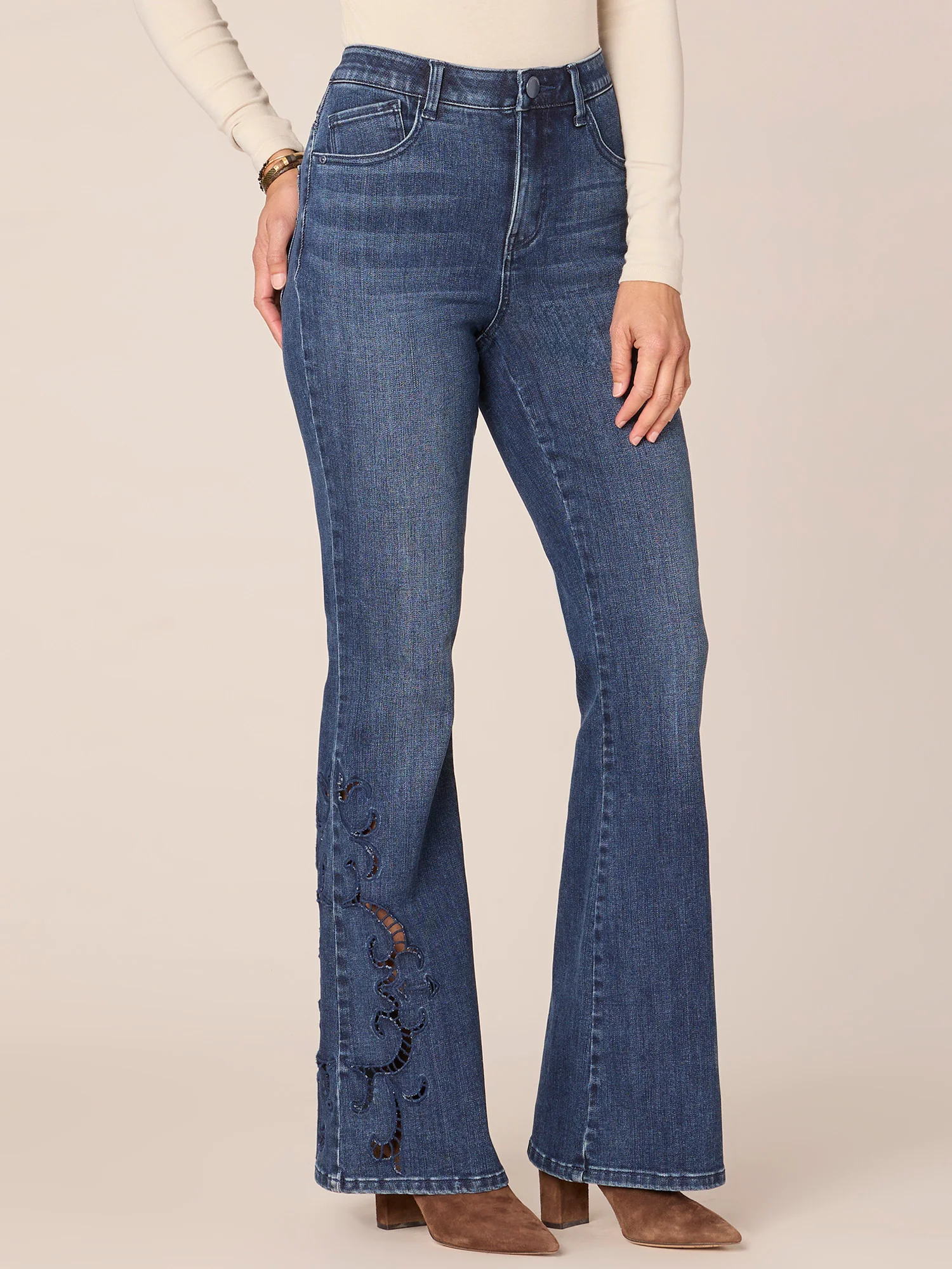"Ab"solution High Rise Out There Flare Jeans with Die Cut Embroidery