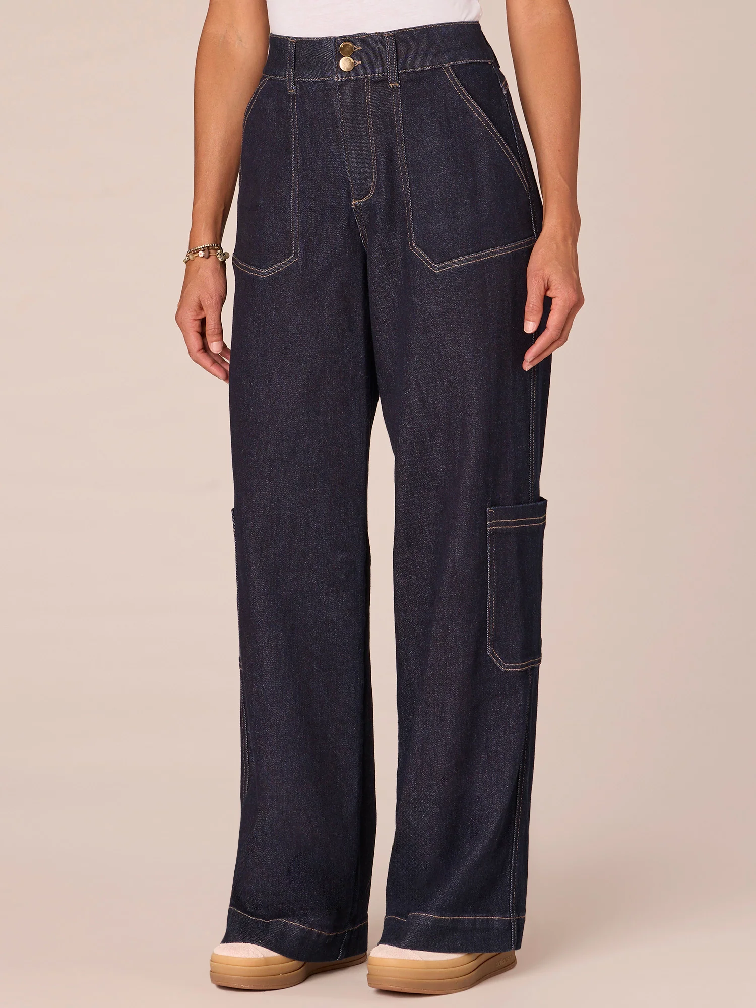 "Ab"solution Skyrise V-Pocket Seaming Detail Utility Wide Leg Jeans