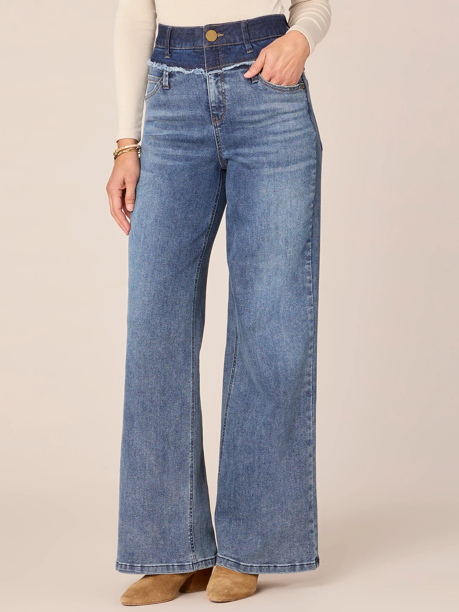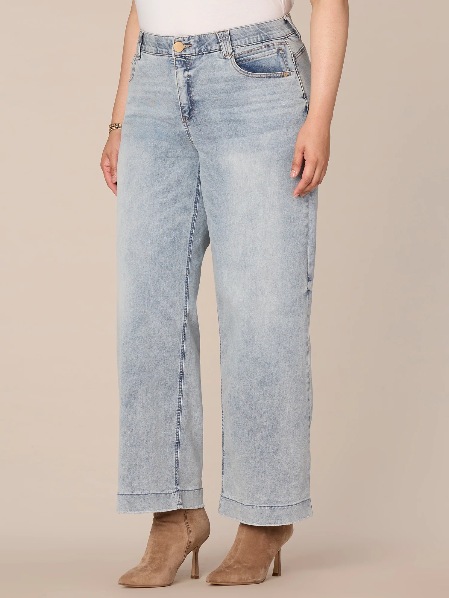 "Ab"solution High Rise Wide Leg Jeans with Subtle Fading Detail