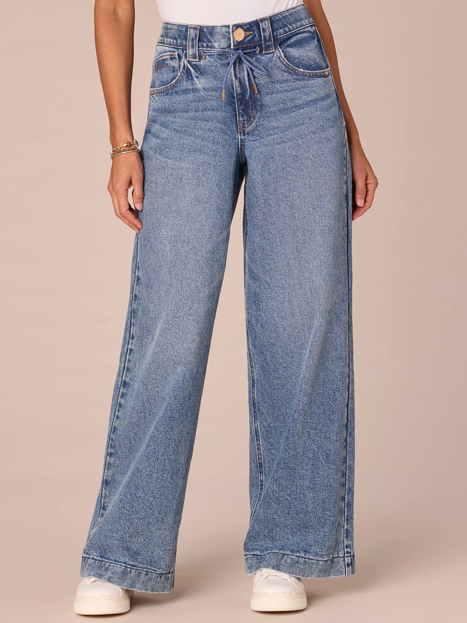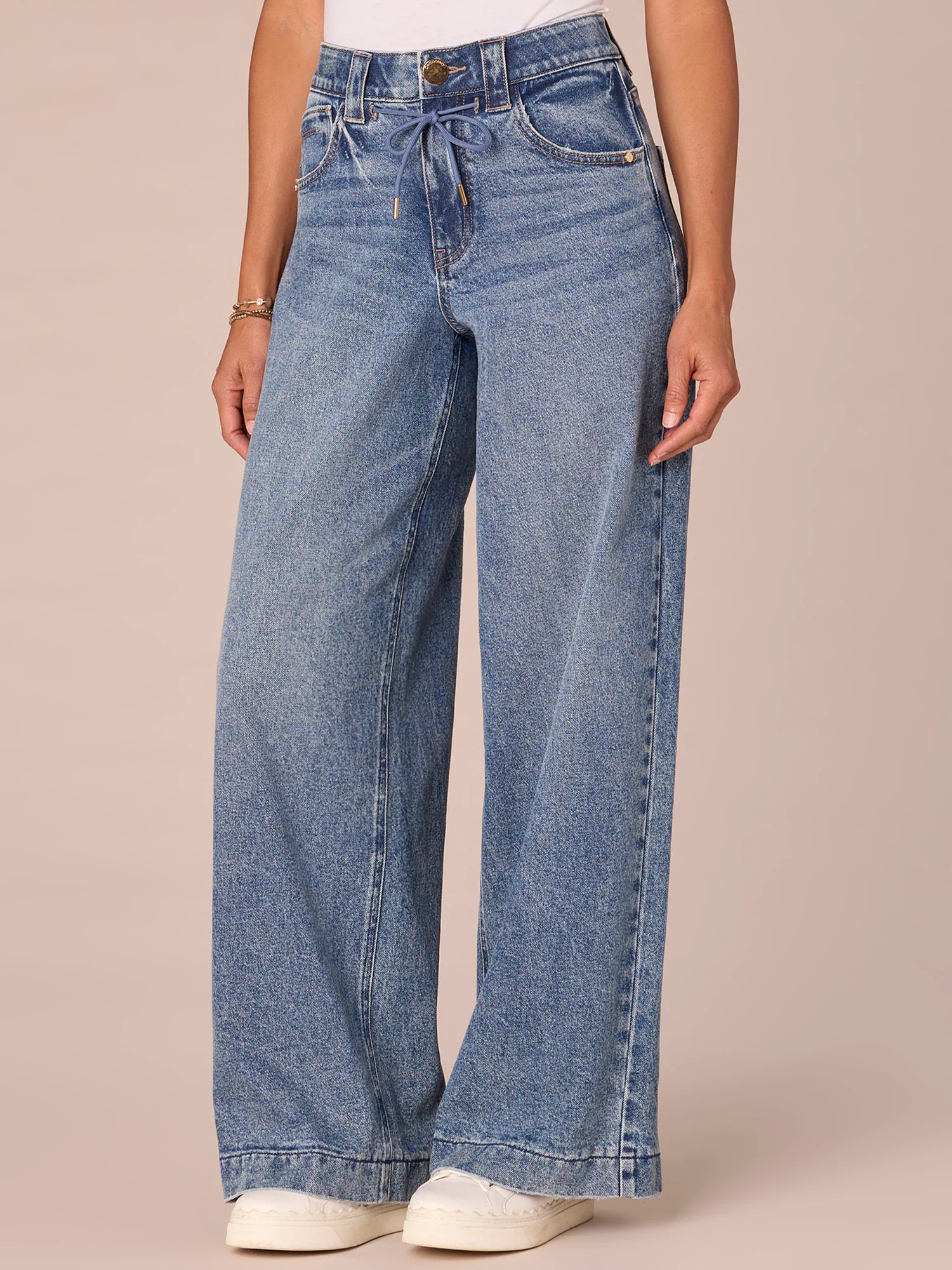 "Ab"solution Skyrise Drawstring Waistband Wide Leg Jeans with V-Yoke