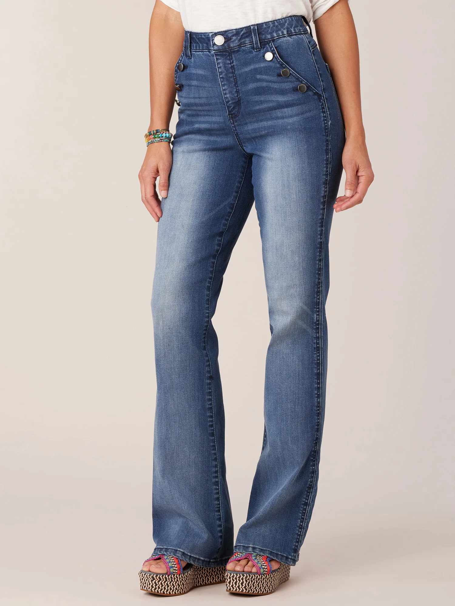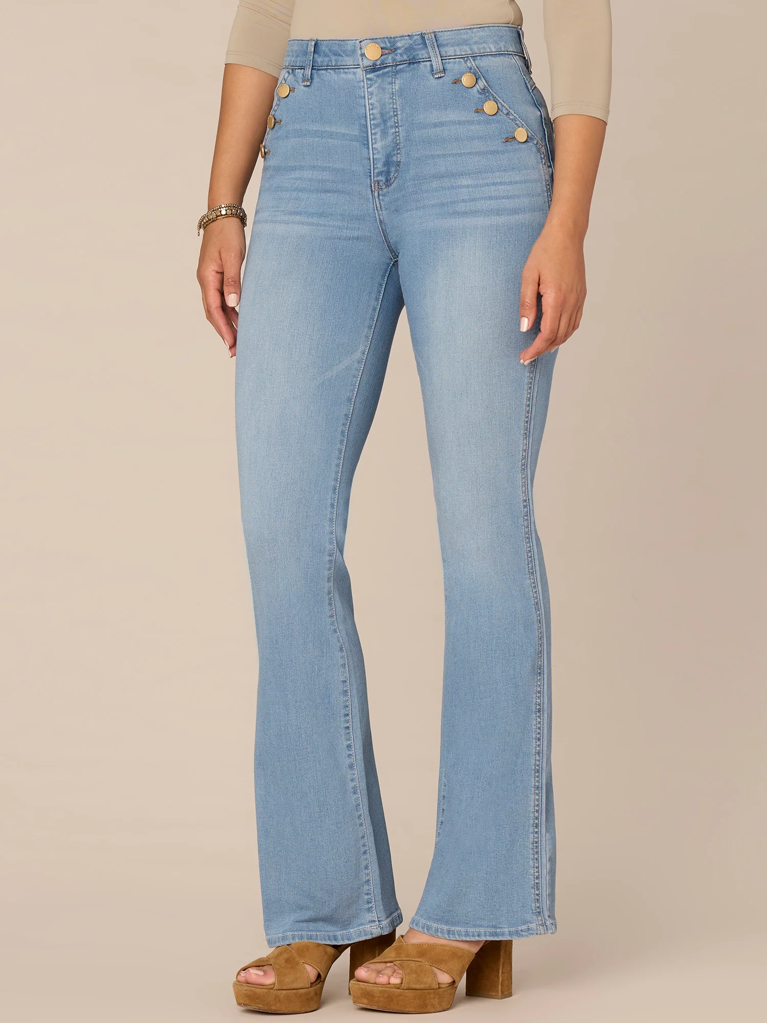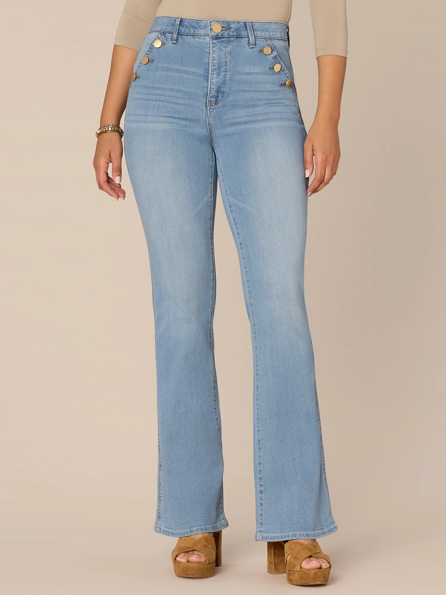"Ab"solution Sailor Button Long Flare Petite Jeans