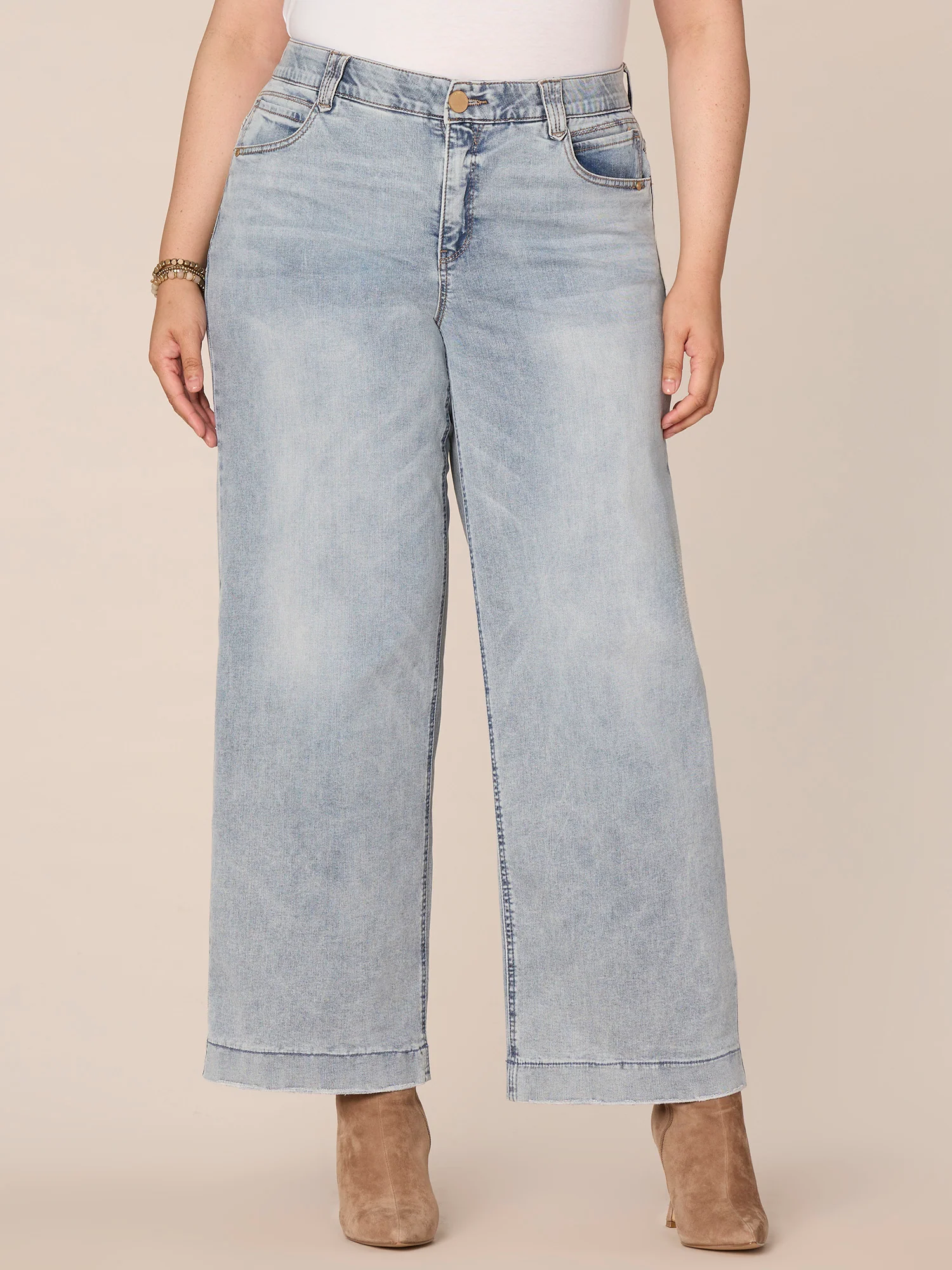 "Ab"solution High Rise Faded Wide Leg Plus Size Jeans