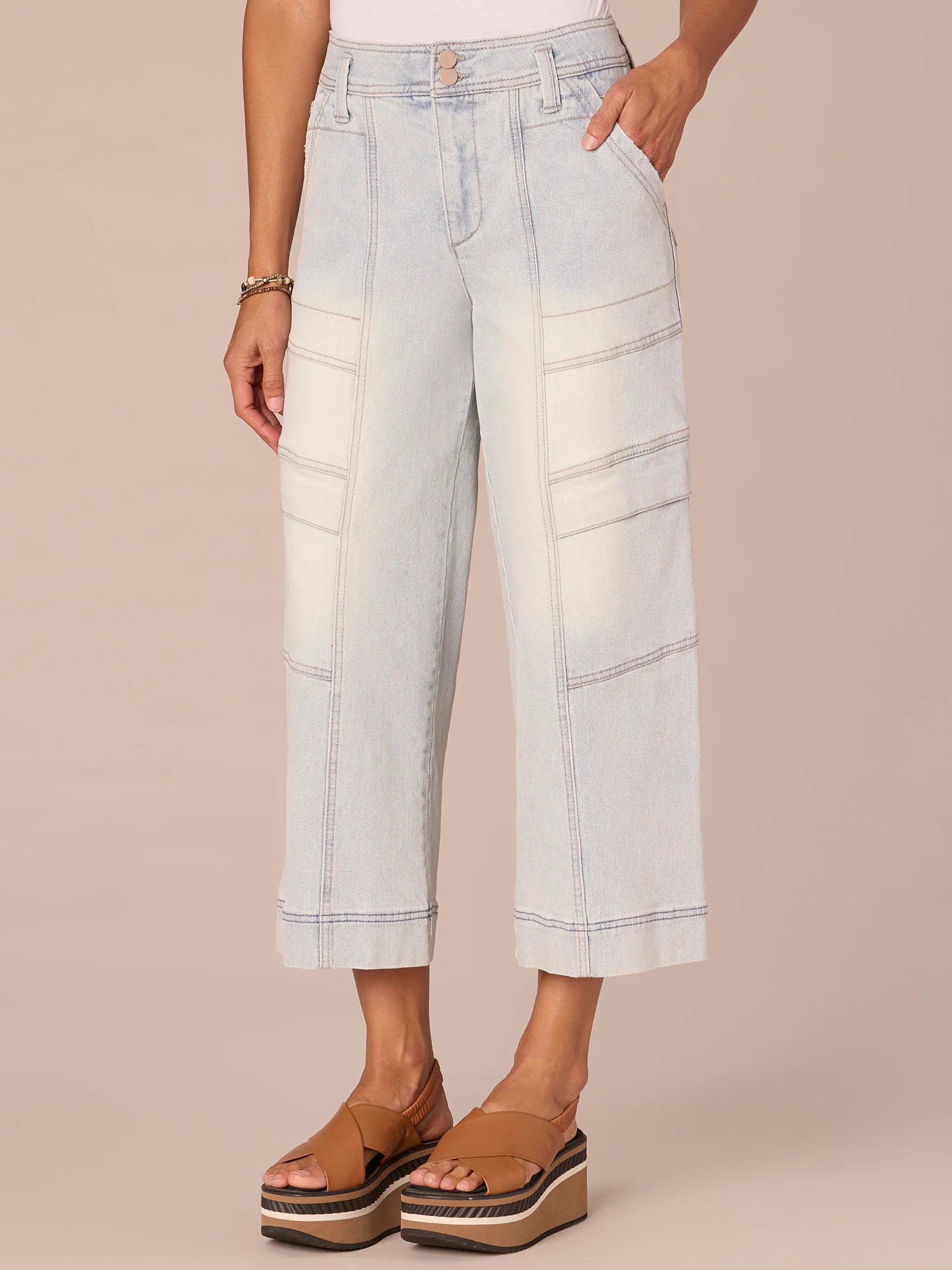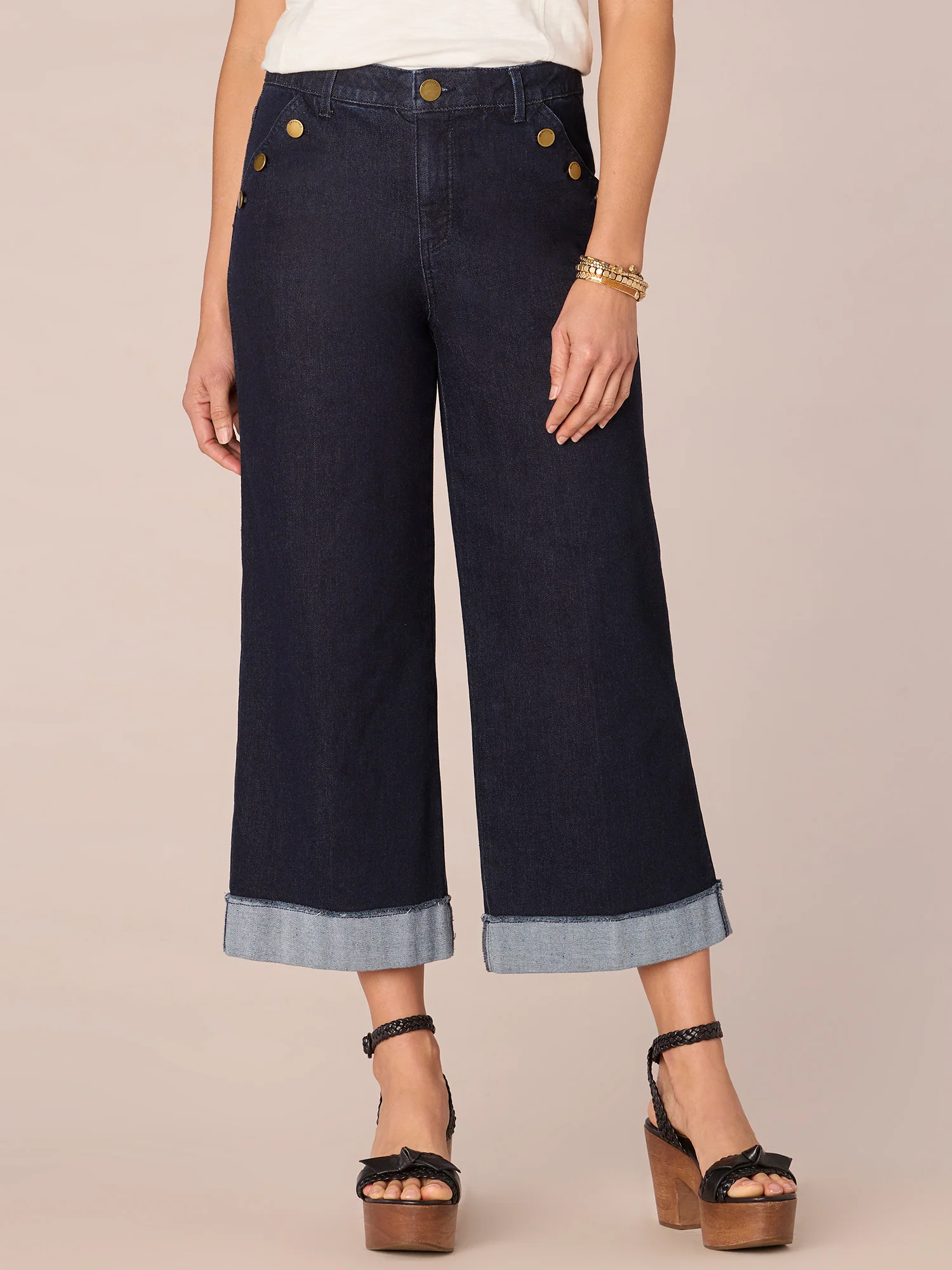 "Ab"solution Skyrise Sailor Button Cropped Wide Leg Petite Jean