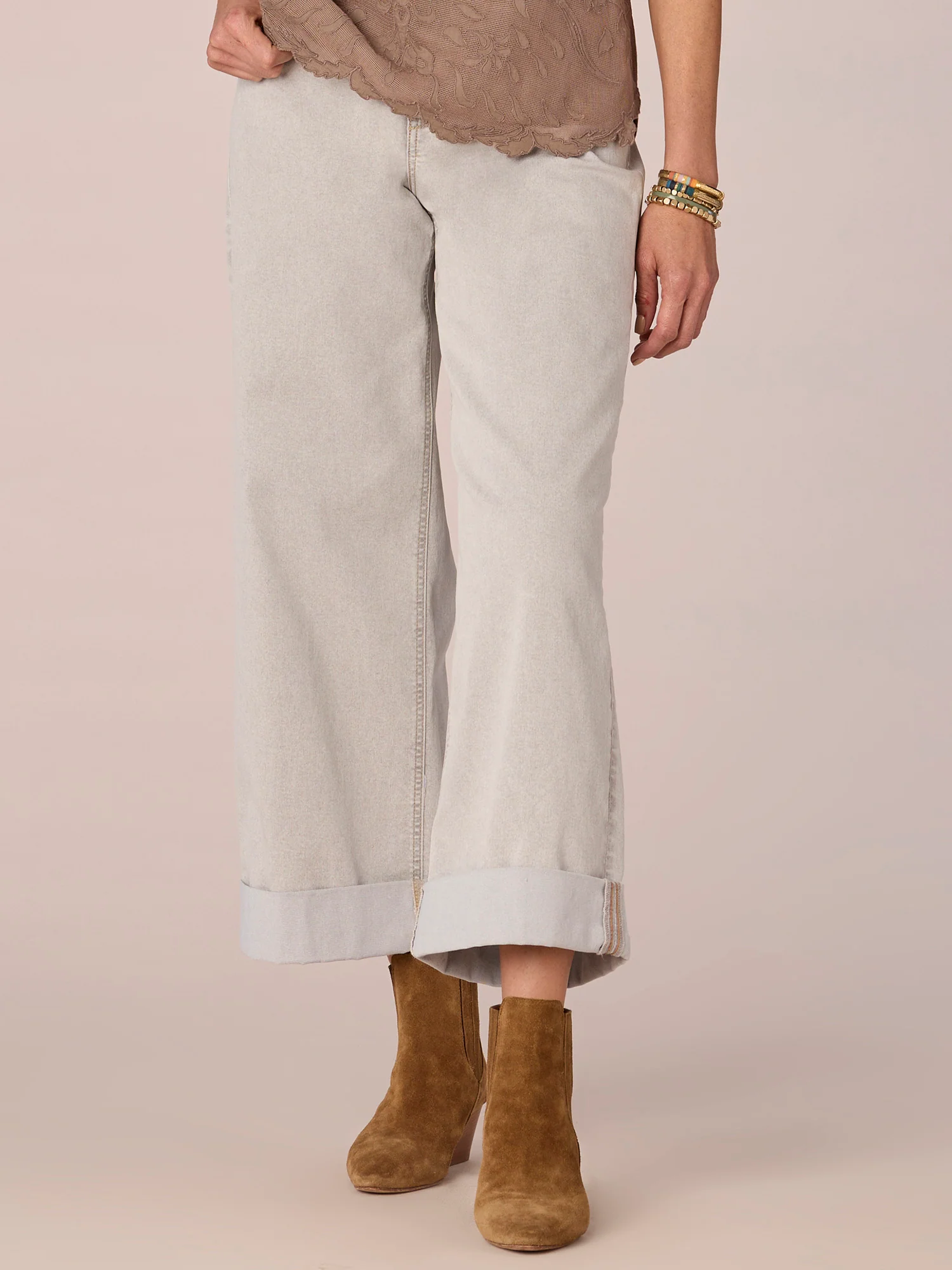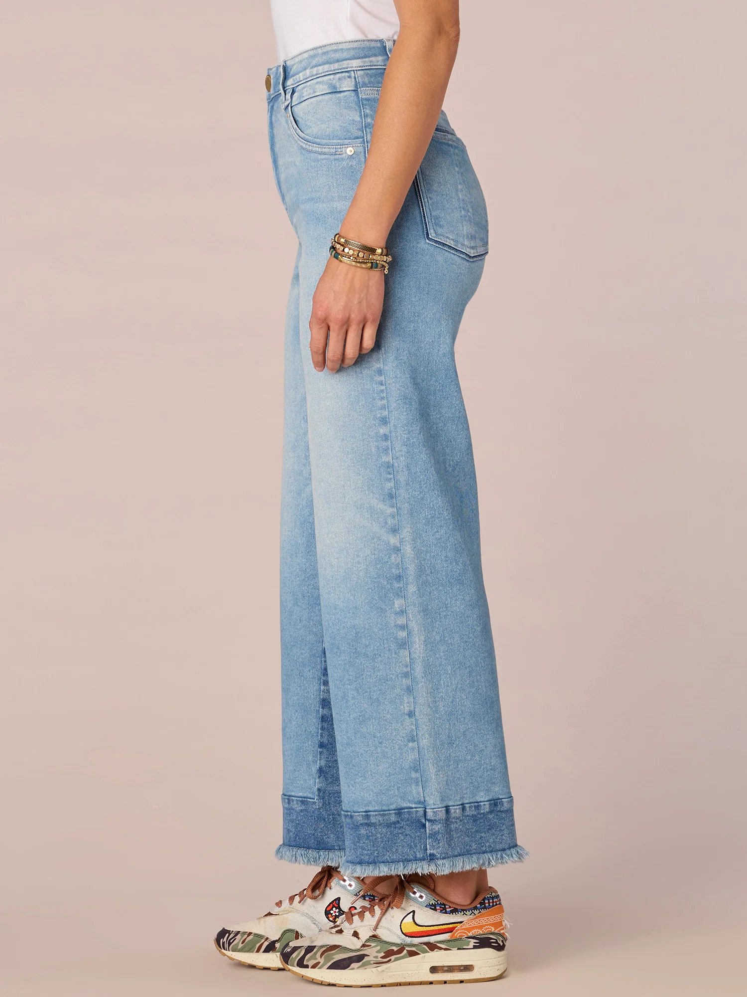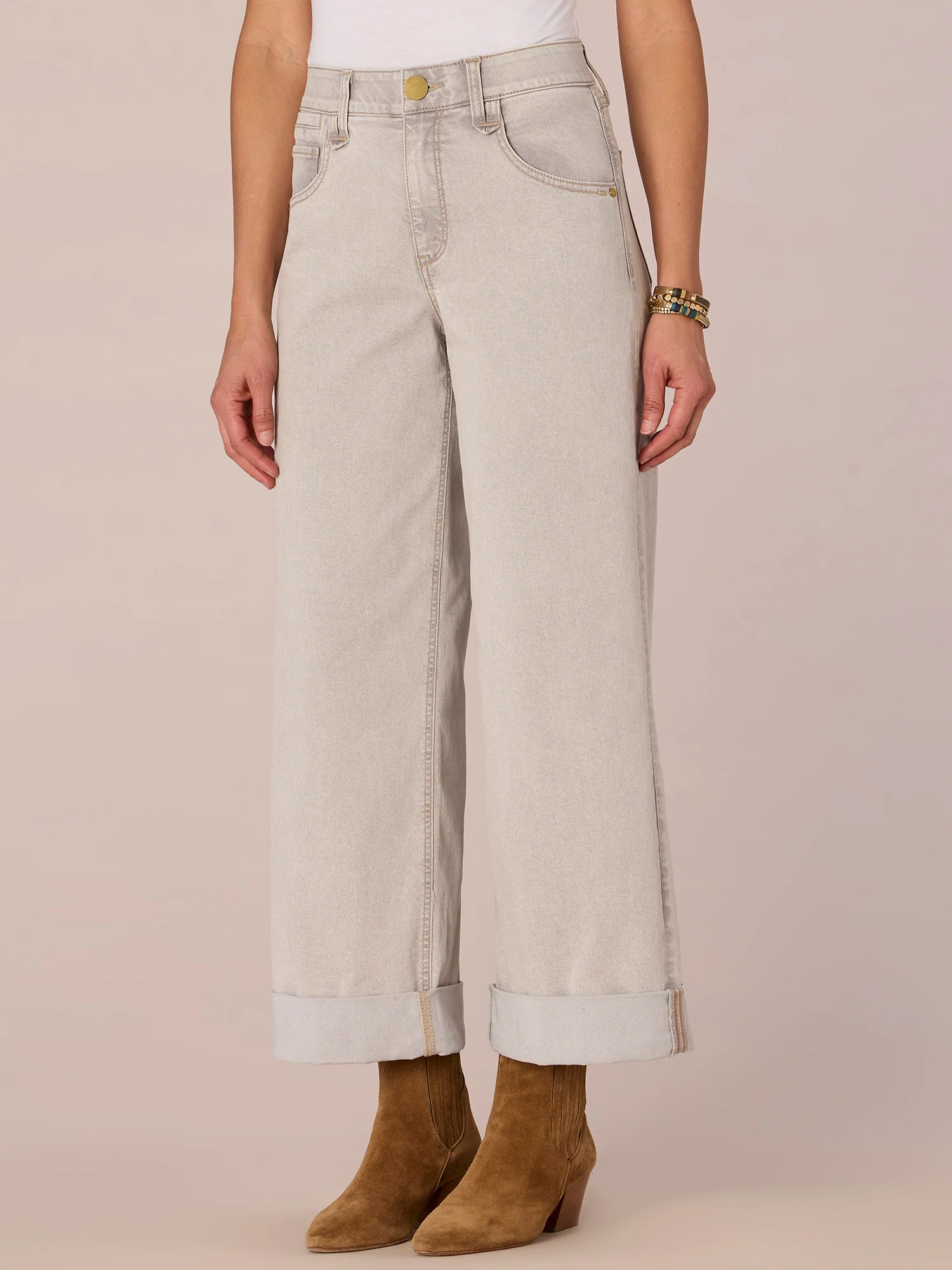 "Ab"solution High Rise Cuffed Wide Leg Jean with Double Peak Yoke