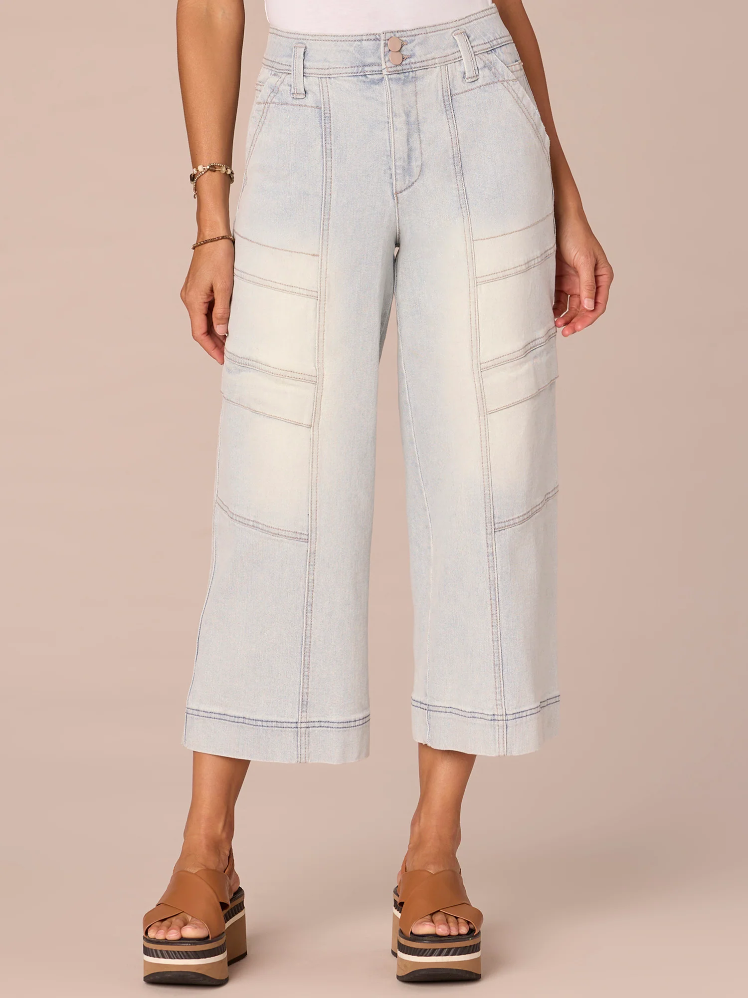 "Ab"solution Skyrise Double Button Cropped Wide Leg Utility Jeans