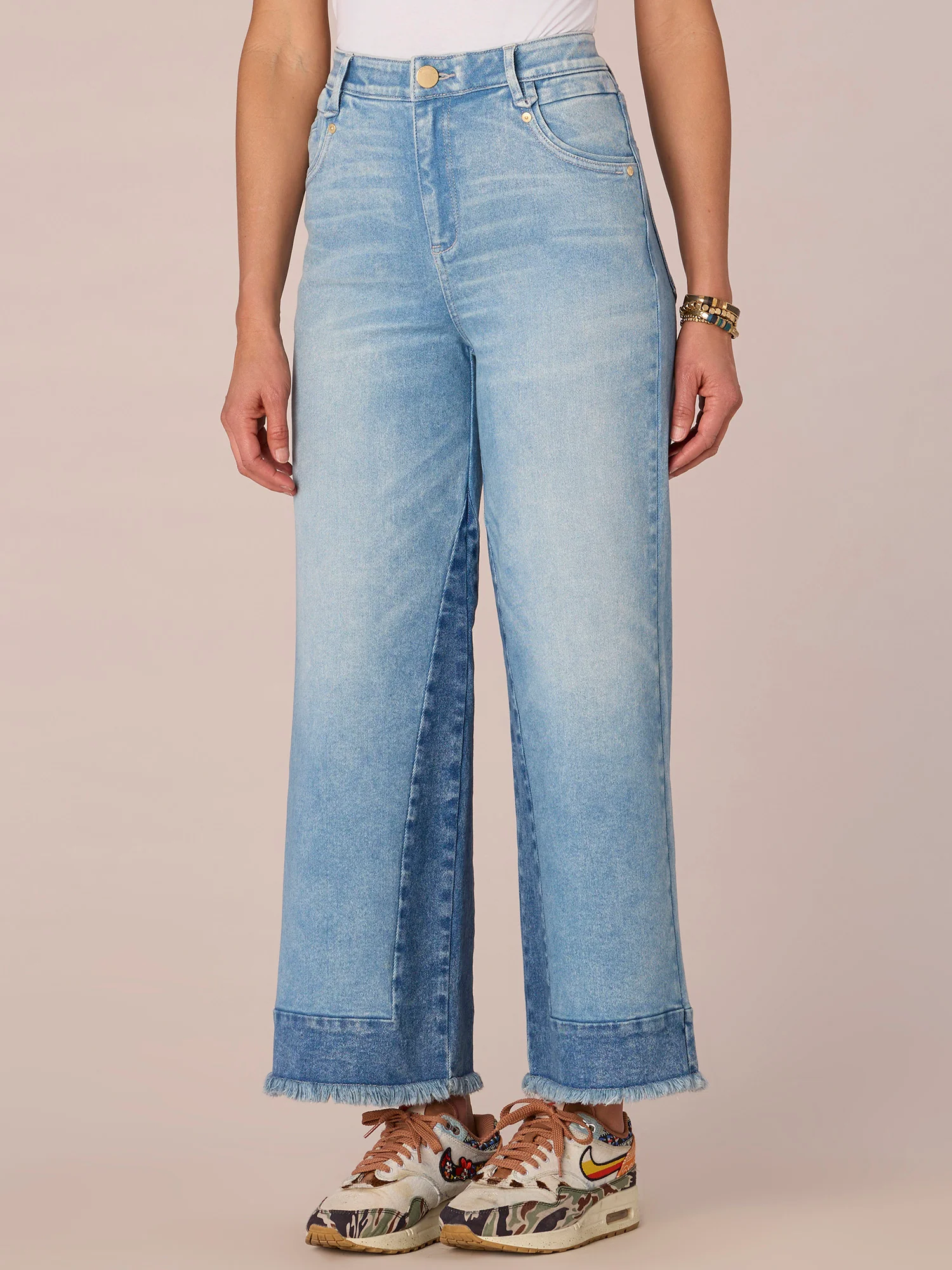 "Ab"solution Skyrise Fray Hem Wide Leg Jeans with Splicing