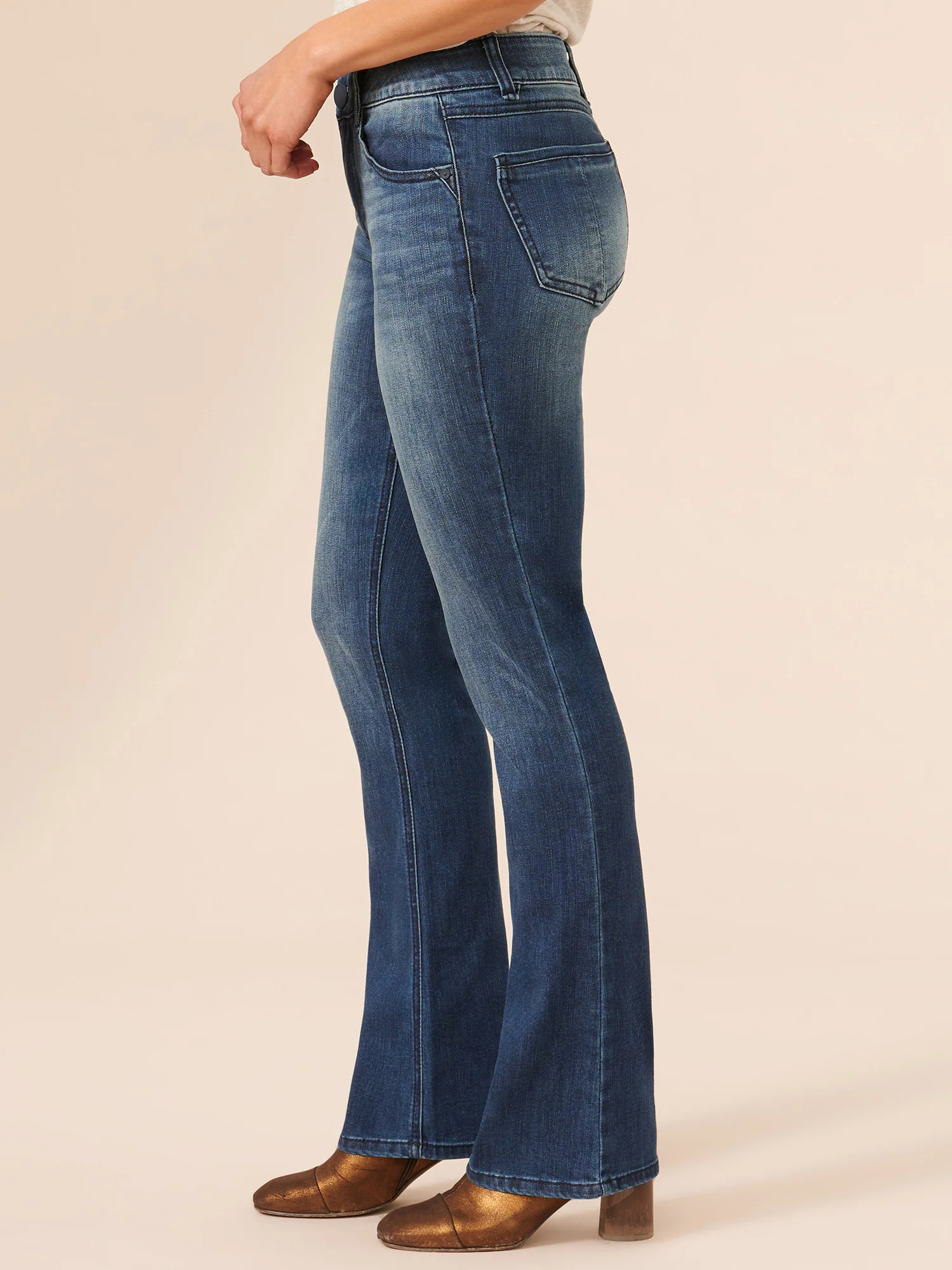The Itty Bitty Bootcut jean is fitted from the hips through calves, with a baby bootcut leg opening that creates a lengthening effect. Engineered with "Ab"solution fit technology to smooth, support, and enhance your shape giving you everything from a flatter tummy to a perkier rear view.