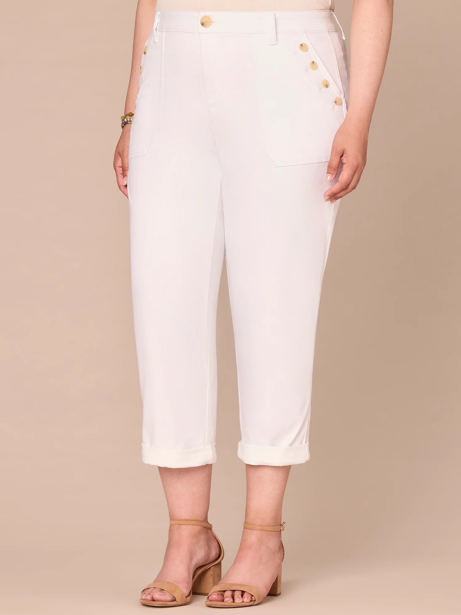 "Ab"solution High Rise Rope Cascading "D" Pocket Modern Capri Jeans