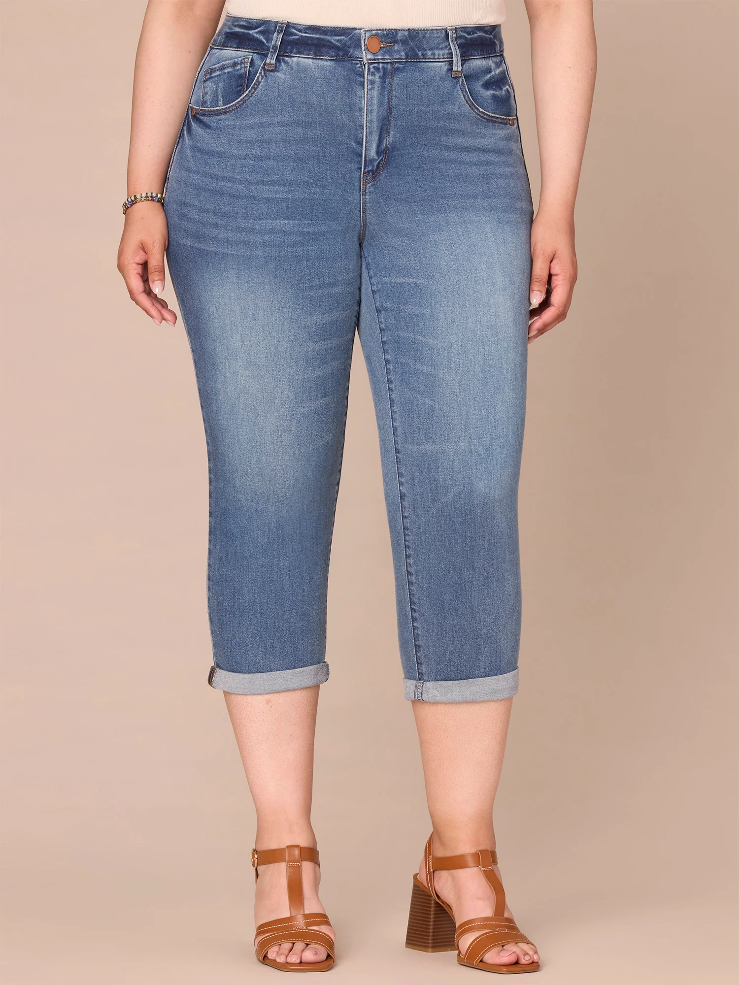 "Ab"solution High Rise Cuffed Plus Size Straight Leg Jeans