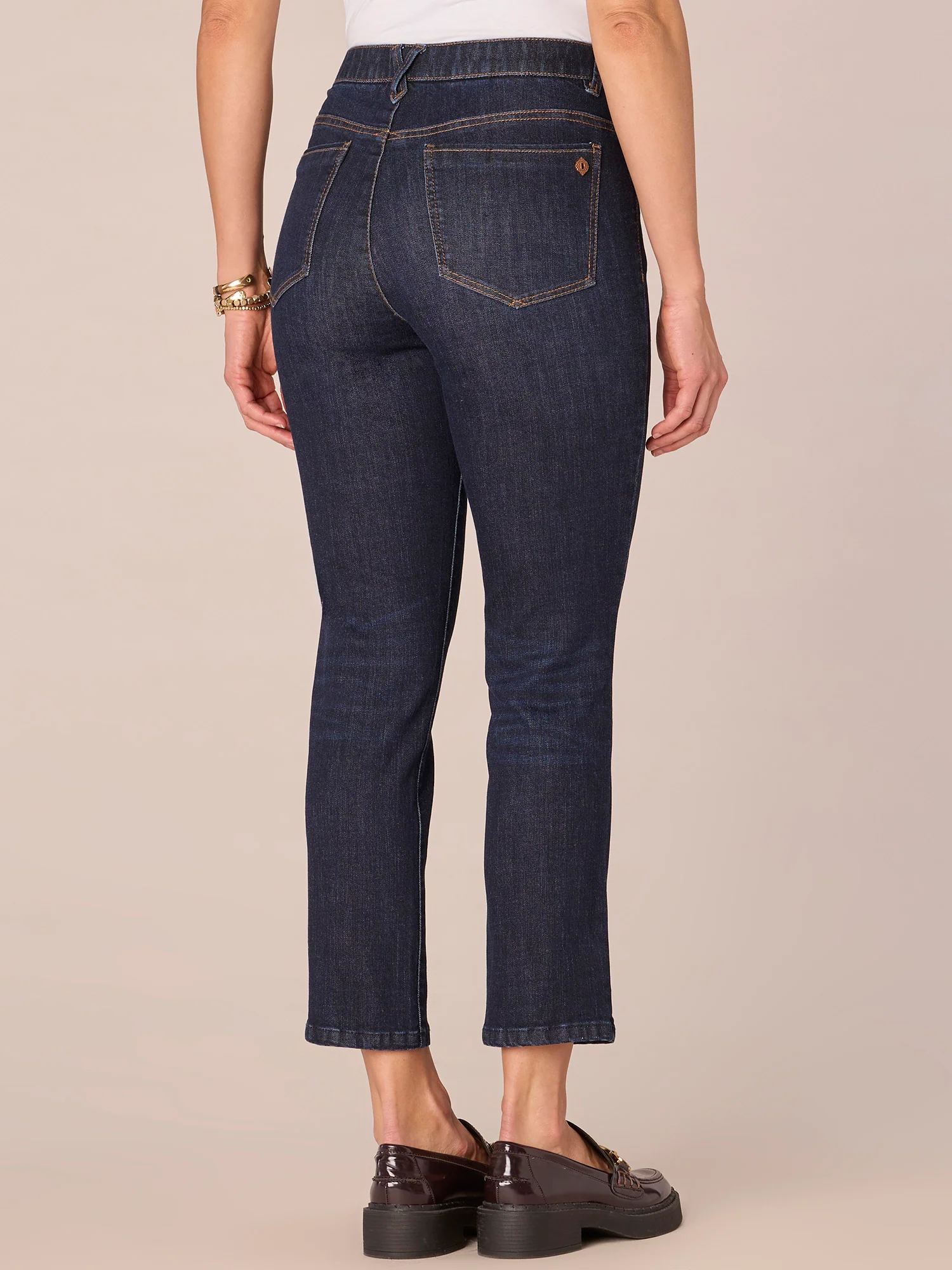 Here s the skinny: These Ab solution Skinny jeans in a dark indigo artisanal wash have a perfectly slim (but not too tight) fit that plays well with all your favorite wardrobe pieces. They feature a high rise waist, classic five-pocket styling, and our signature fit technology that boosts your assets and your confidence with a hidden no gap waistband and sweetheart shaped back yoke.