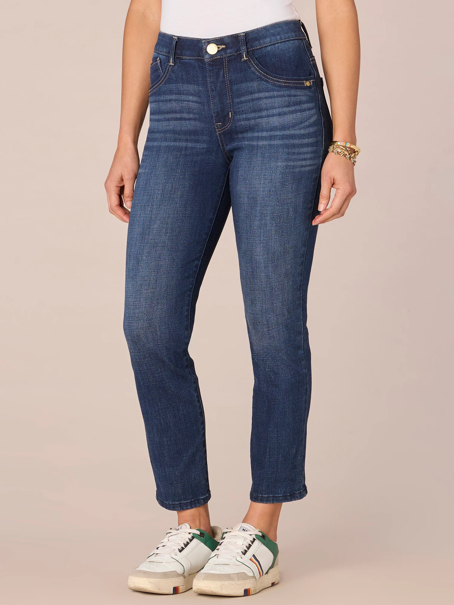 Core closet classics like this Ab solution Skinny jean in an indigo wash will complement your looks and your shape all year round. They have a high rise waist, subtle fading details, and a sweetheart shaped back yoke for a booty lift effect. Plus, our signature fit technology keeps you comfortable while it molds and holds your shape.