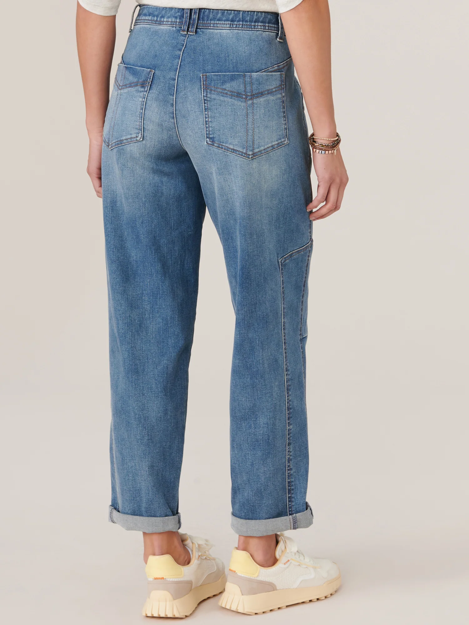 "Ab"solution High Rise Roll Cuff Barrel Leg Jean with Side Panels