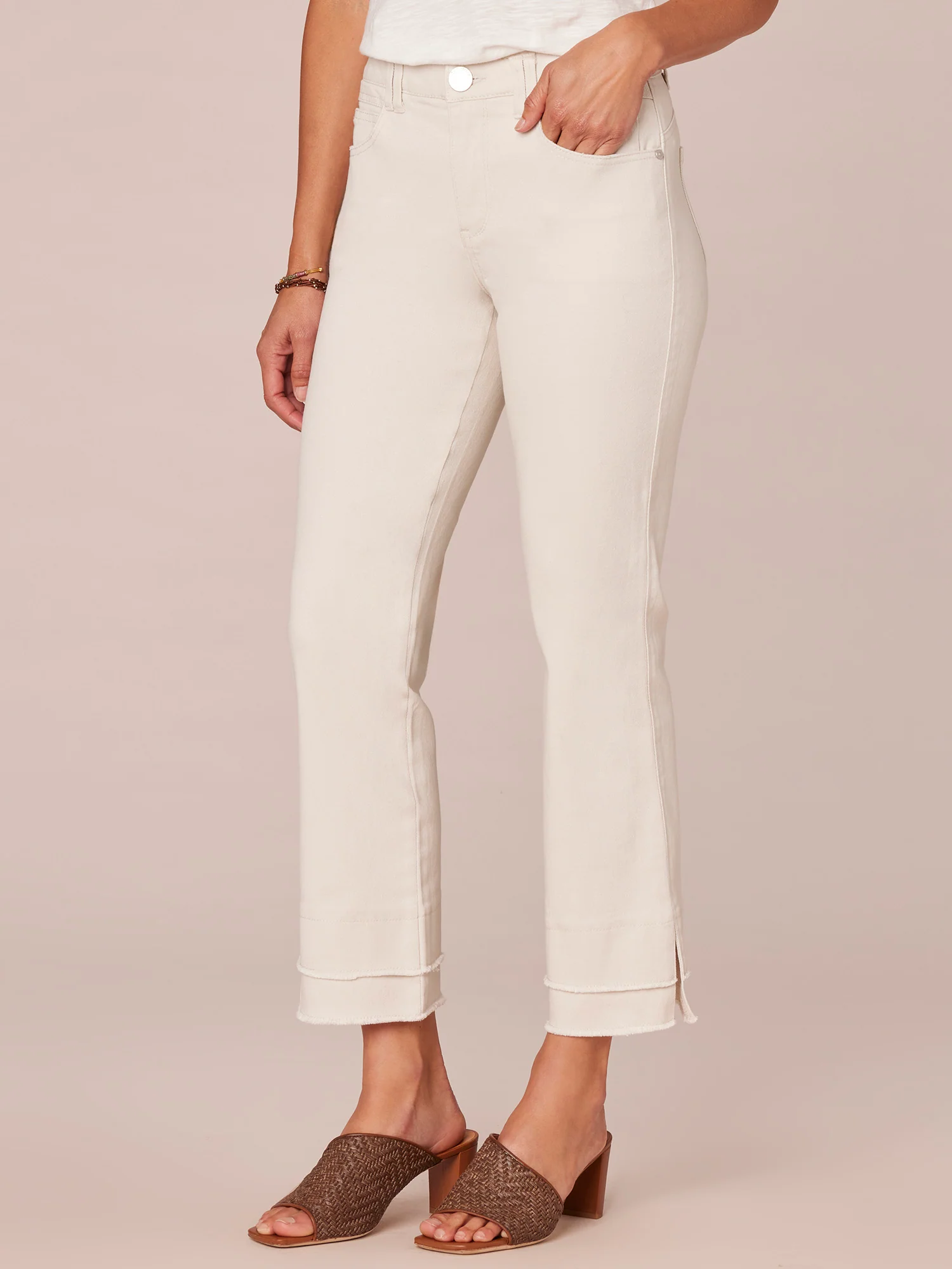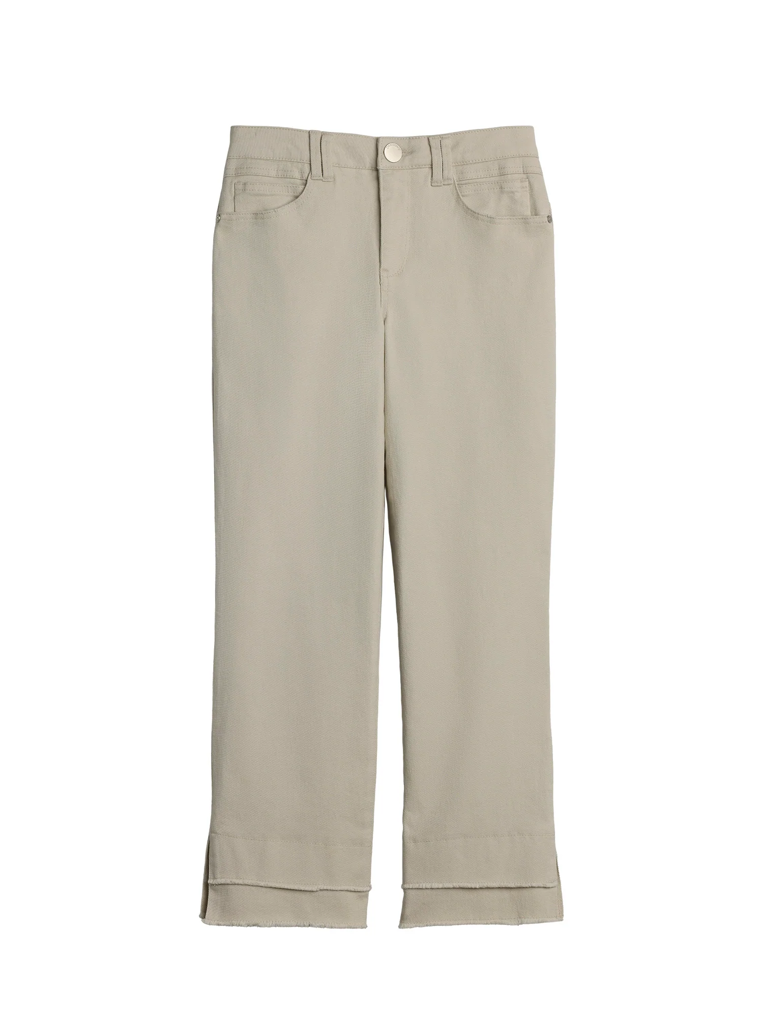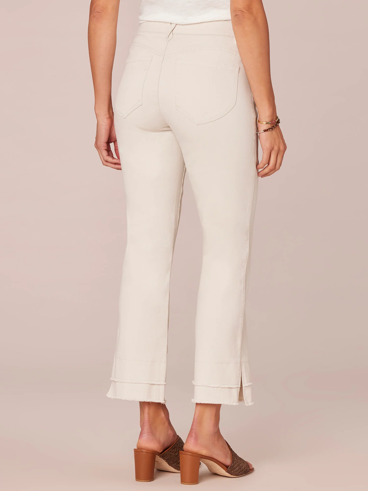 Put your wardrobe in neutral this season with these chic and flattering Ab solution Kick Flare pants in a pale stone hue. This petite style features a mid-rise waist, double layer fray hem, and our exclusive fit technology that molds and holds your shape while boosting your assets (and your confidence).