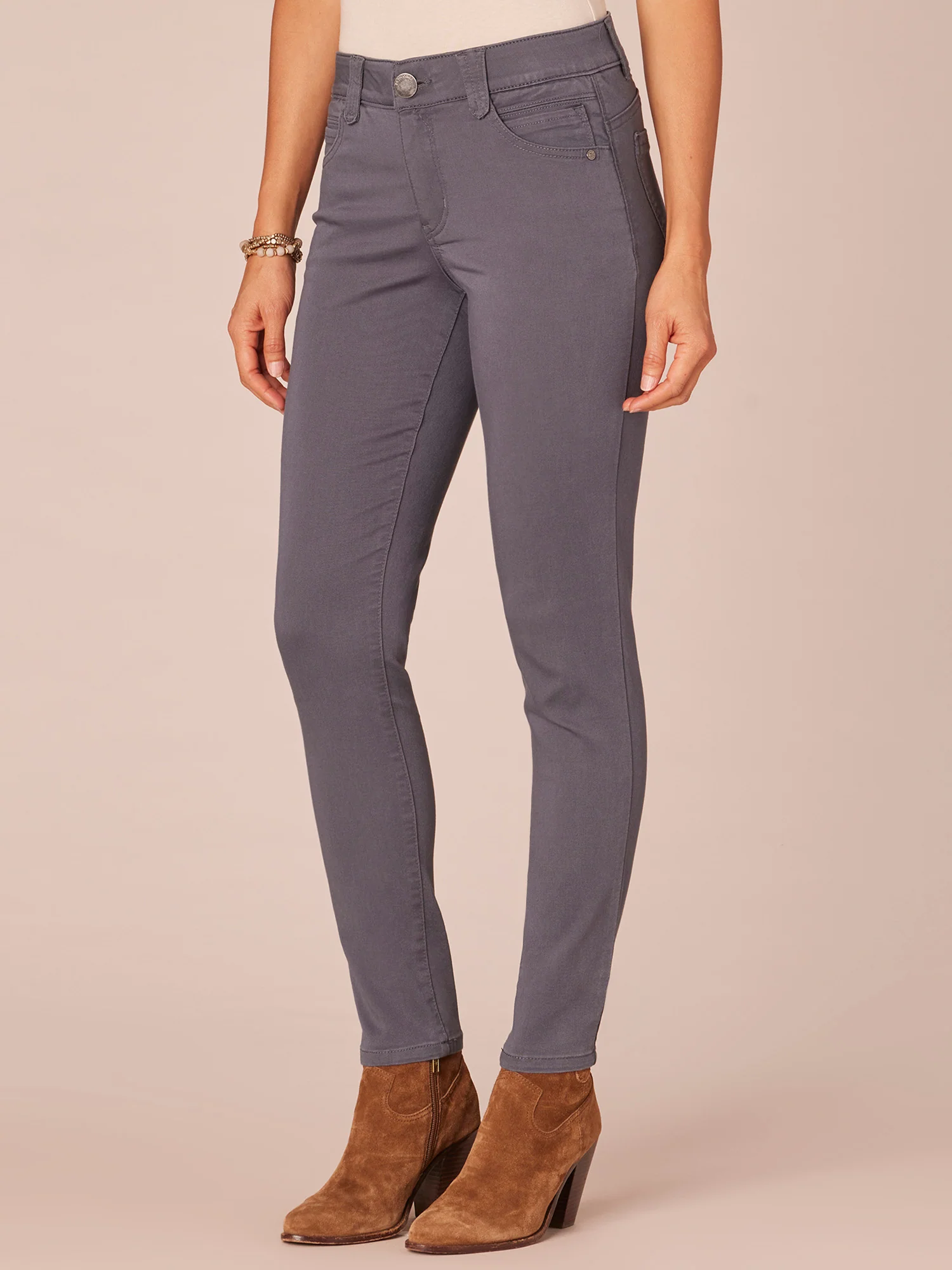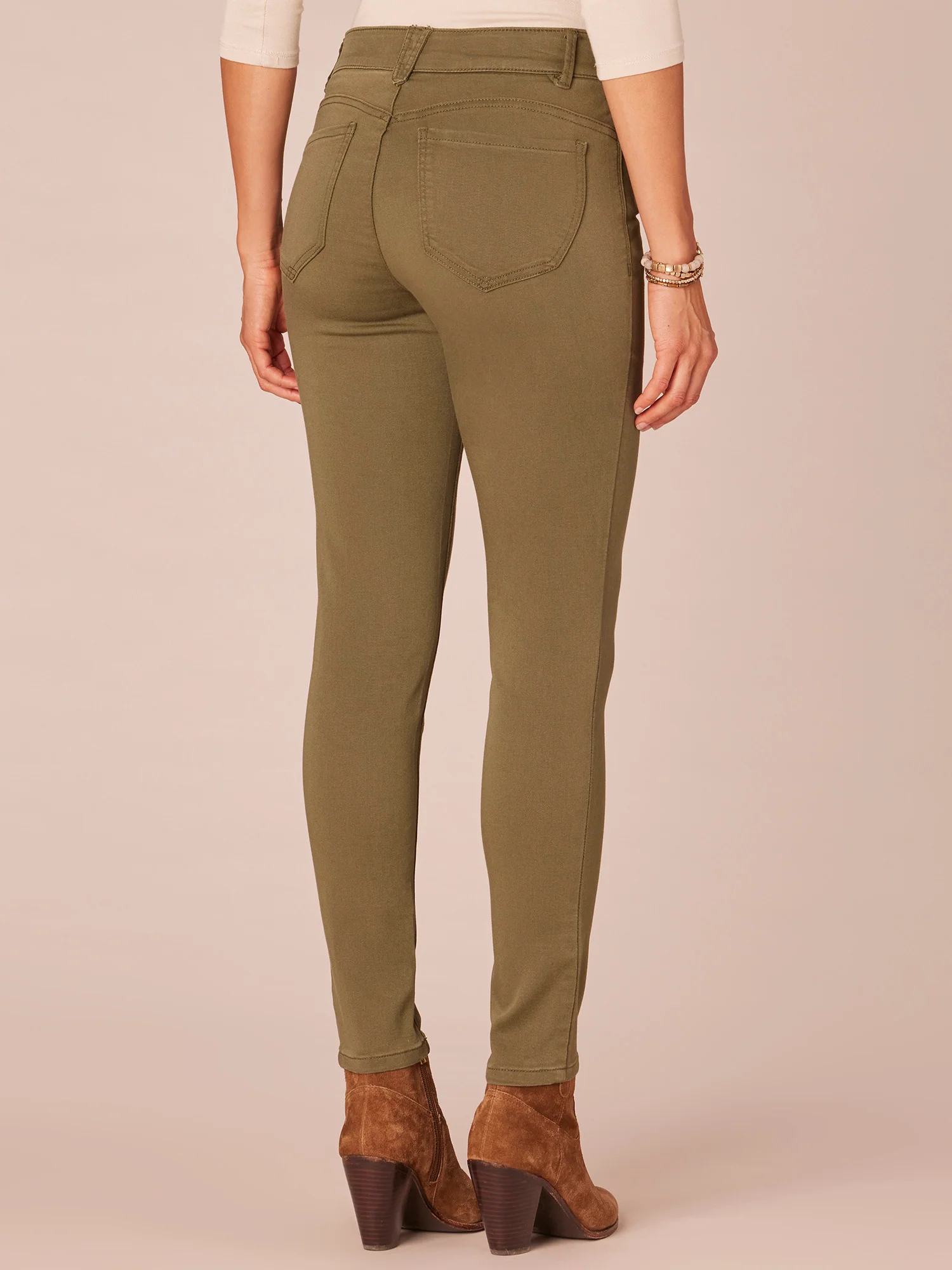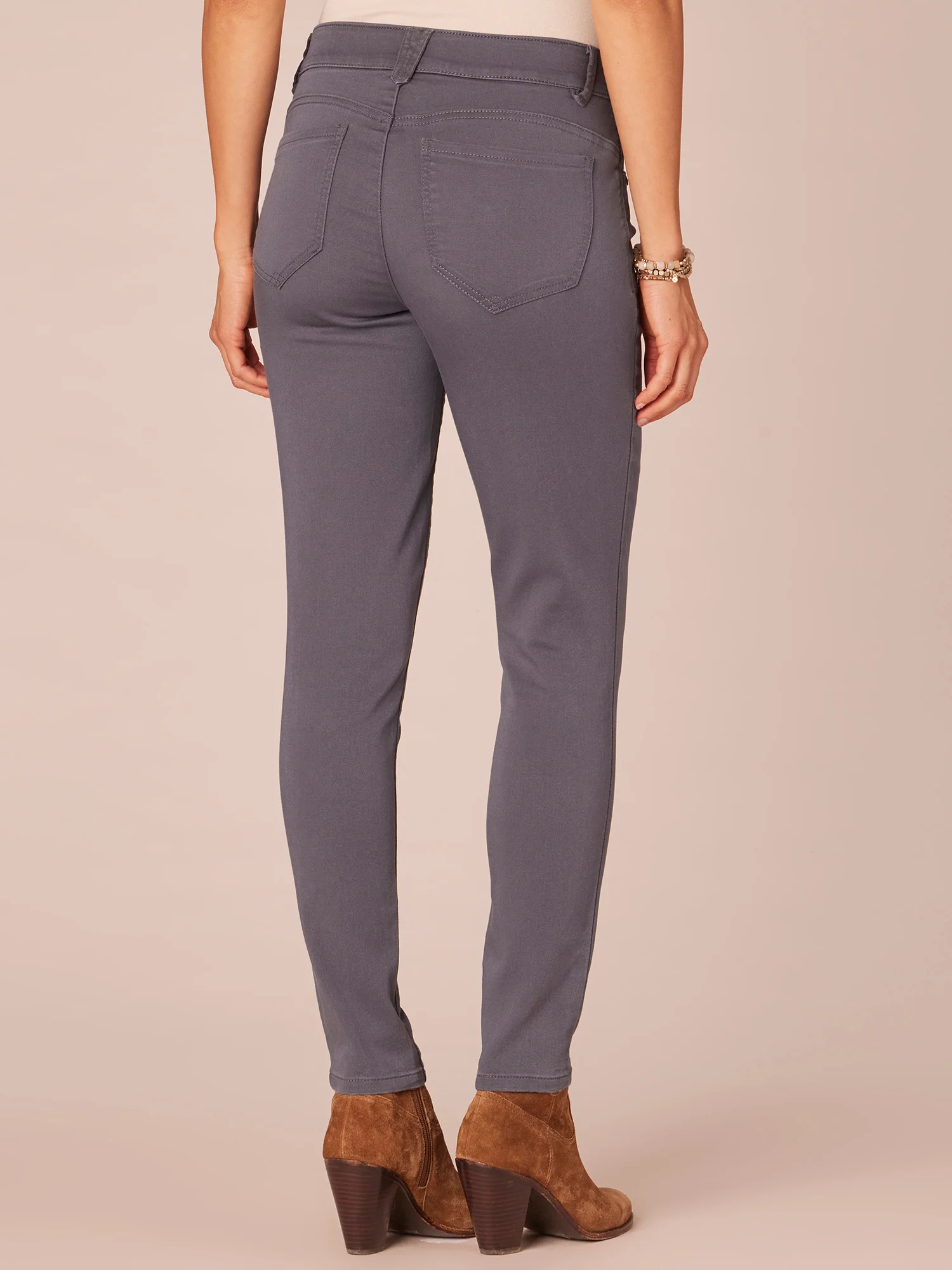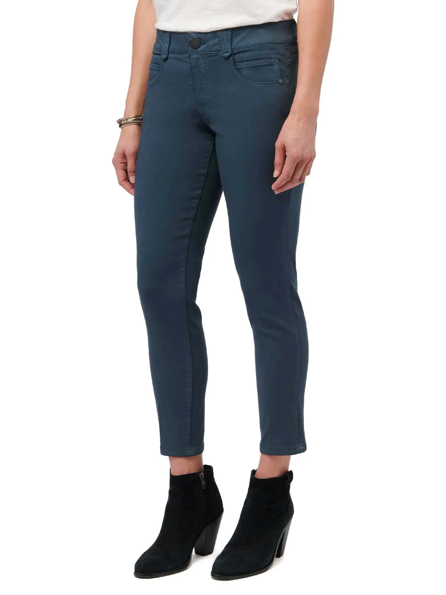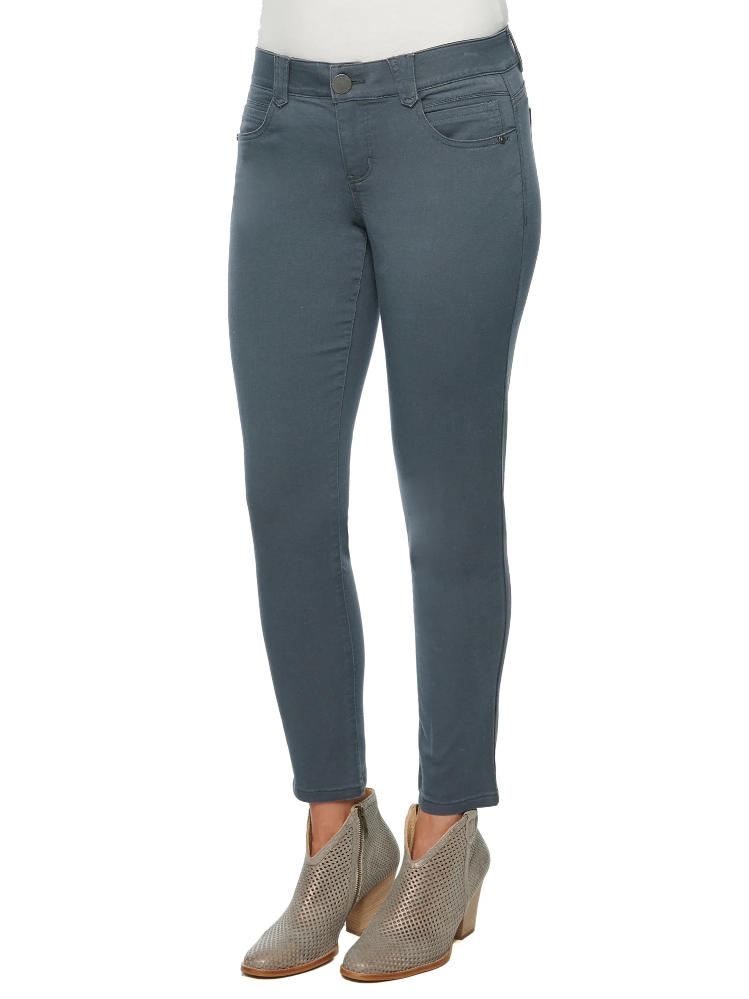 If you ve got the denim blues, a fresh new hue can reinvigorate your whole wardrobe. These Ab solution Ankle Length jeans have a classic skinny silhouette, mid-rise waist, sweetheart shaped back yoke, and they re available in two on-trend colors. With our signature fit technology, they also provide an ultra-flattering fit and all-day comfort with a hidden no gap elastic waistband and premium stretch denim.
