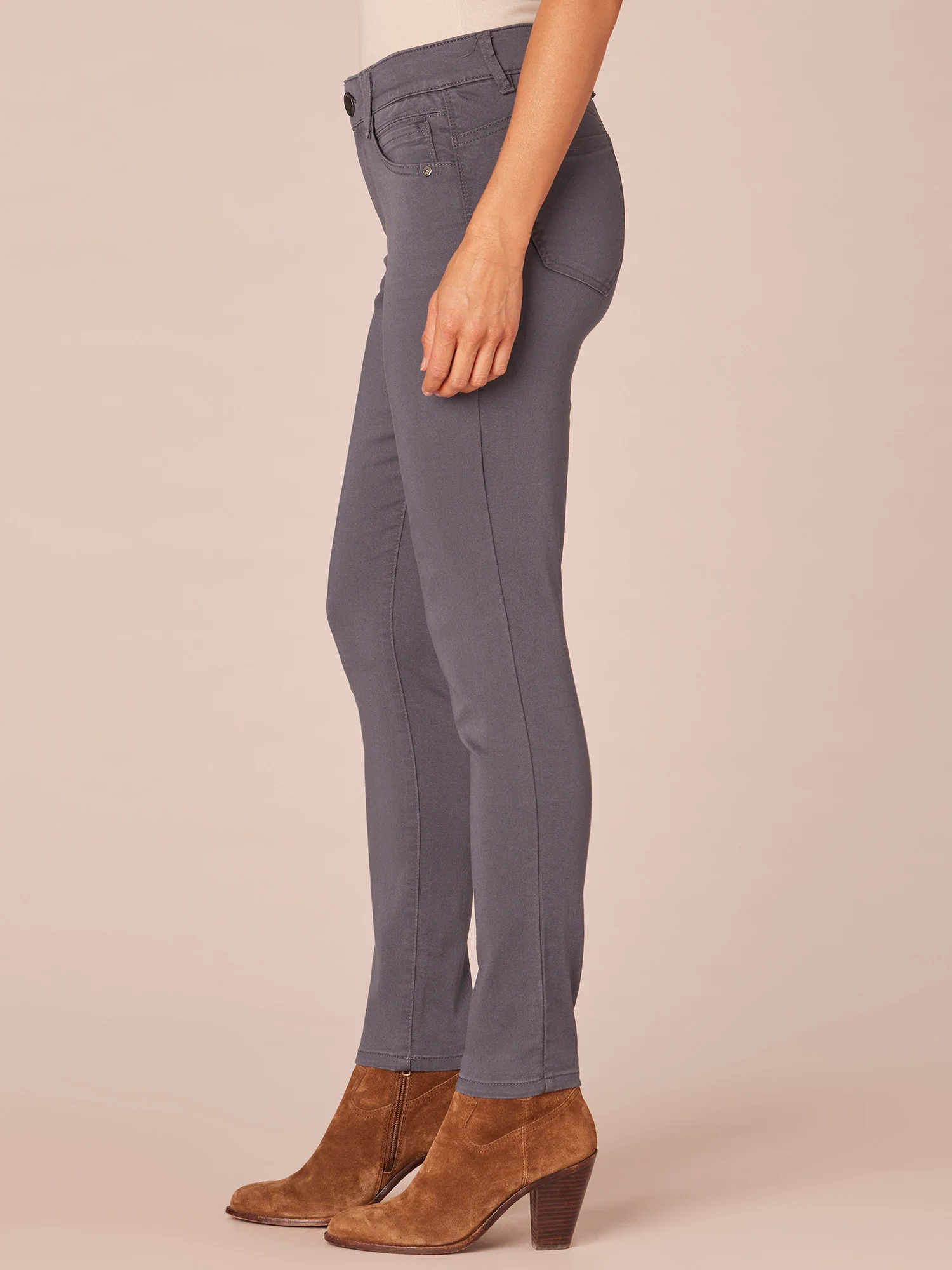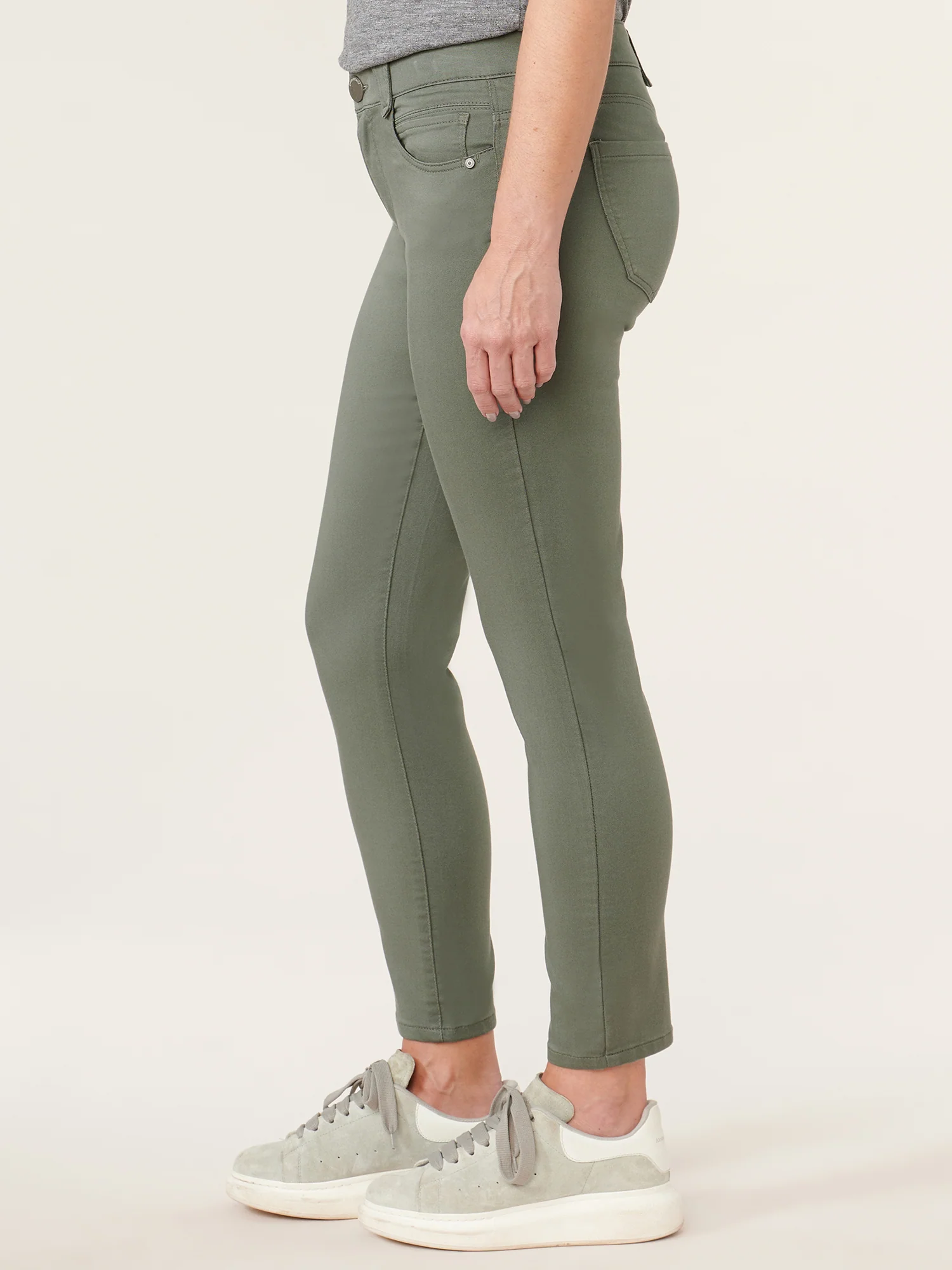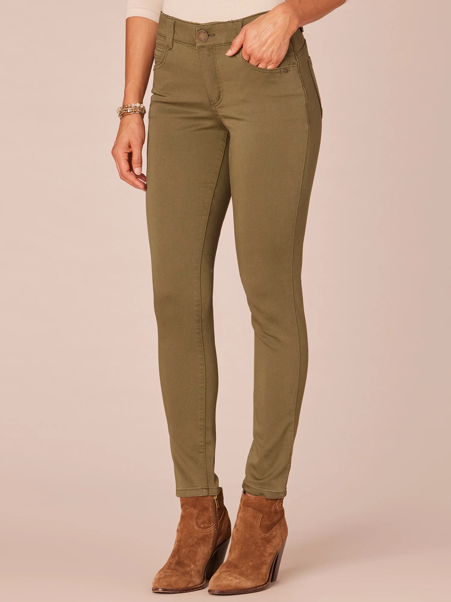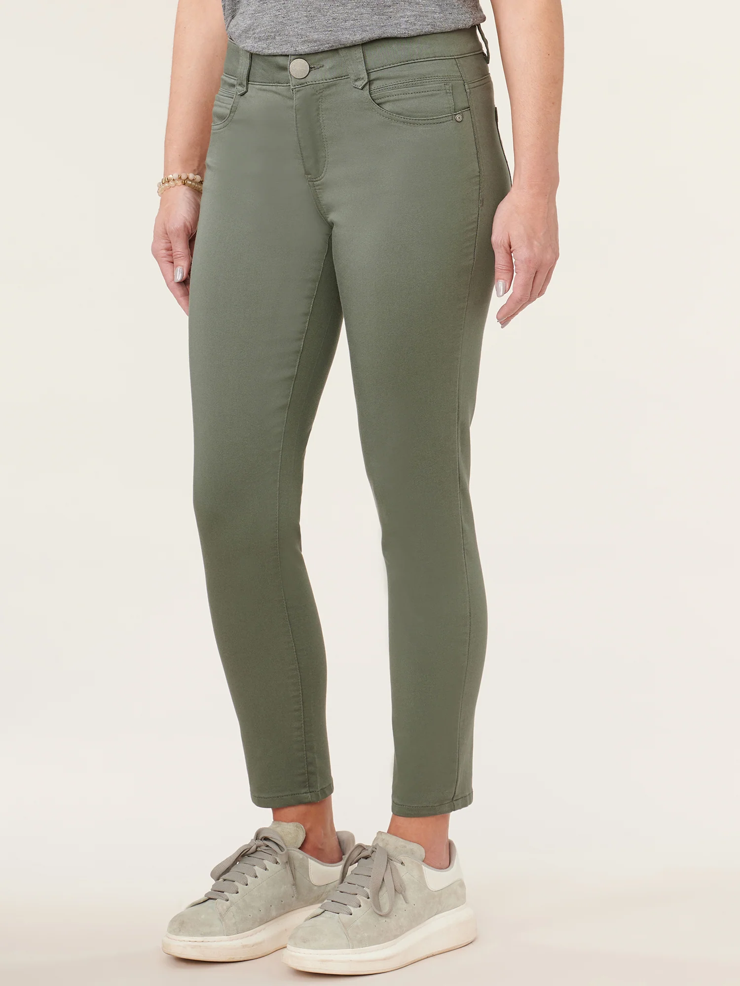 If you ve got the denim blues, a fresh new hue can reinvigorate your whole wardrobe. These Ab solution Ankle Length jeans have a classic skinny silhouette, mid-rise waist, sweetheart shaped back yoke, and they re available in two on-trend colors. With our signature fit technology, they also provide an ultra-flattering fit and all-day comfort with a hidden no gap elastic waistband and premium stretch denim.