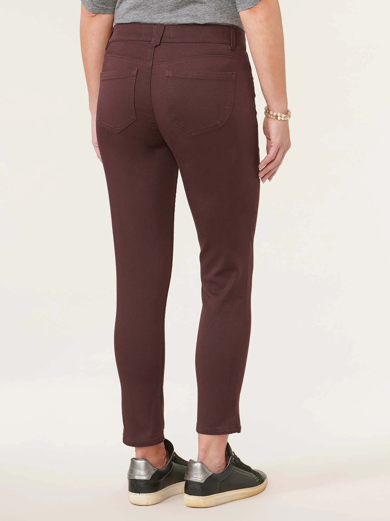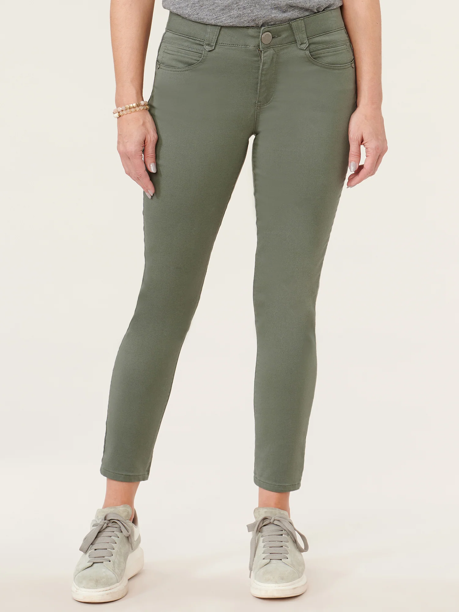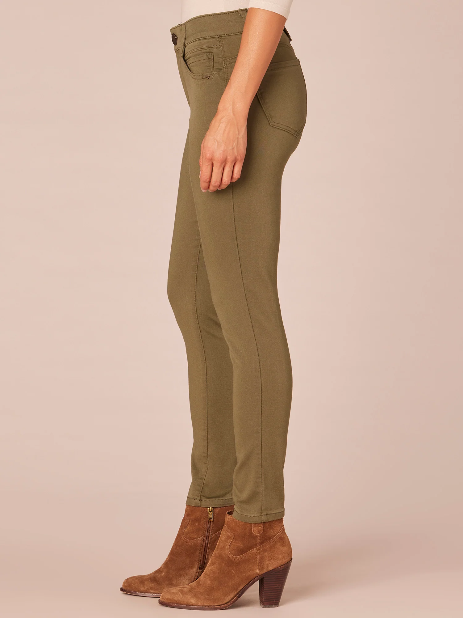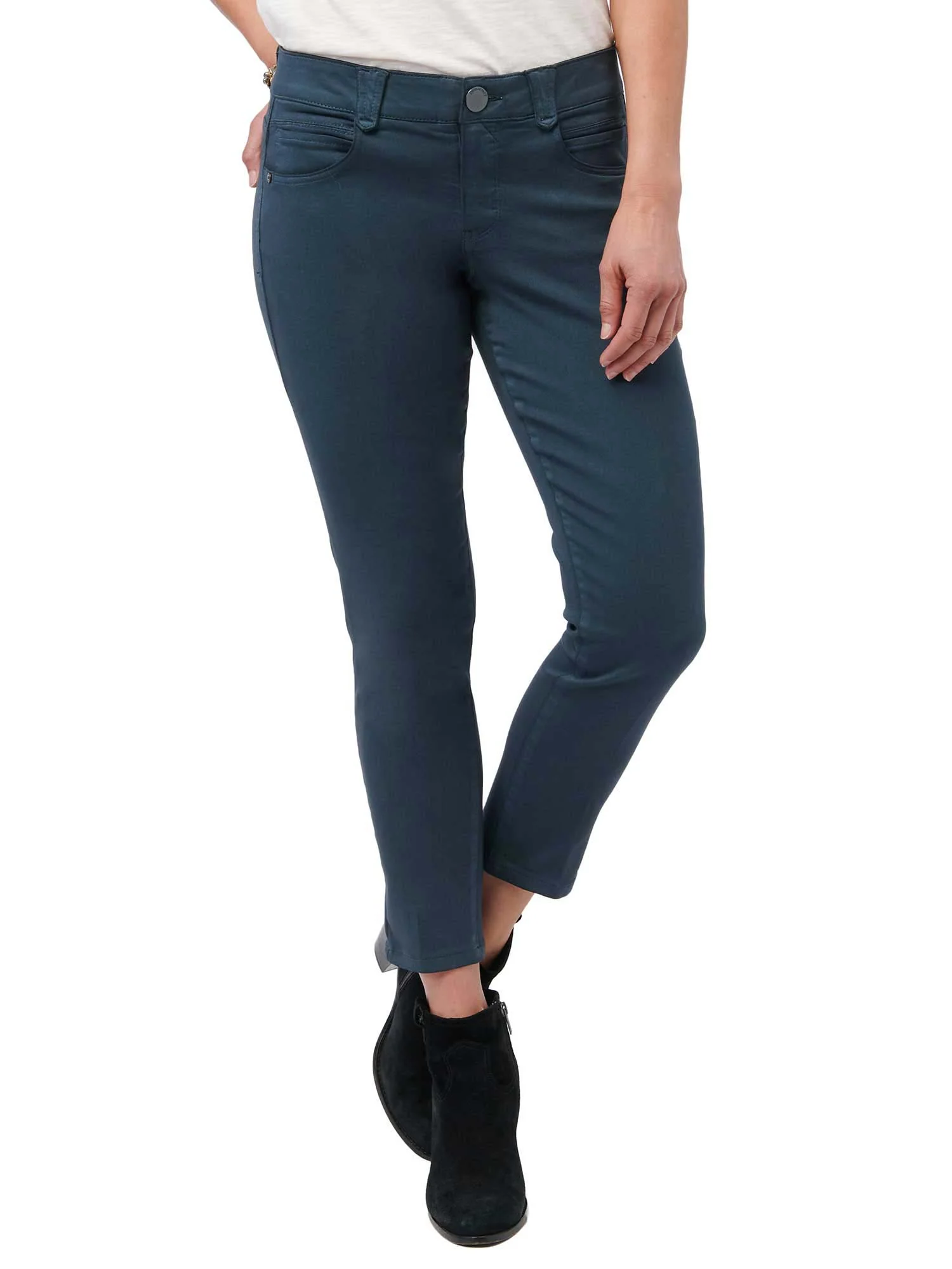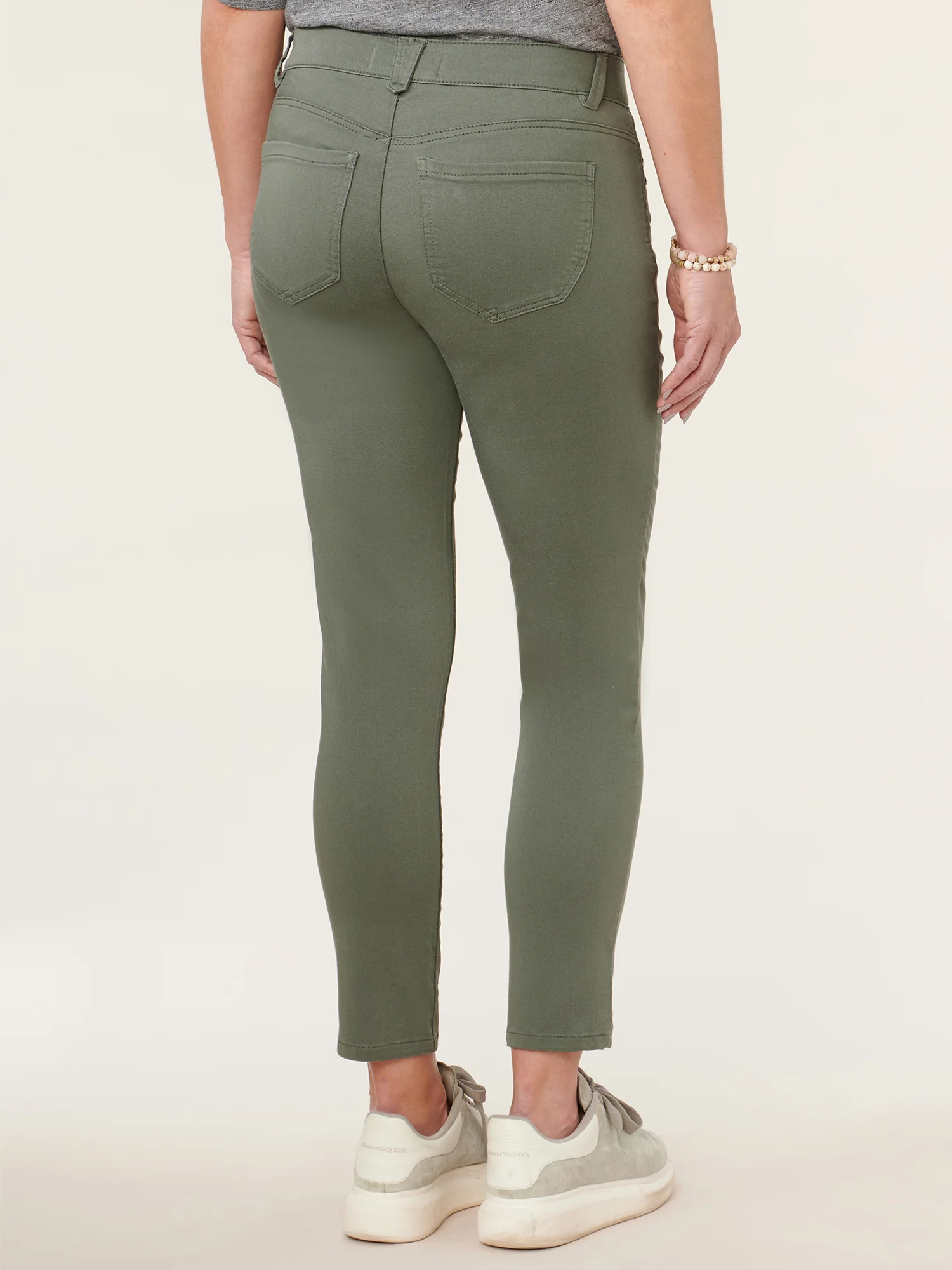 If you ve got the denim blues, a fresh new hue can reinvigorate your whole wardrobe. These Ab solution Ankle Length jeans have a classic skinny silhouette, mid-rise waist, sweetheart shaped back yoke, and they re available in two on-trend colors. With our signature fit technology, they also provide an ultra-flattering fit and all-day comfort with a hidden no gap elastic waistband and premium stretch denim.