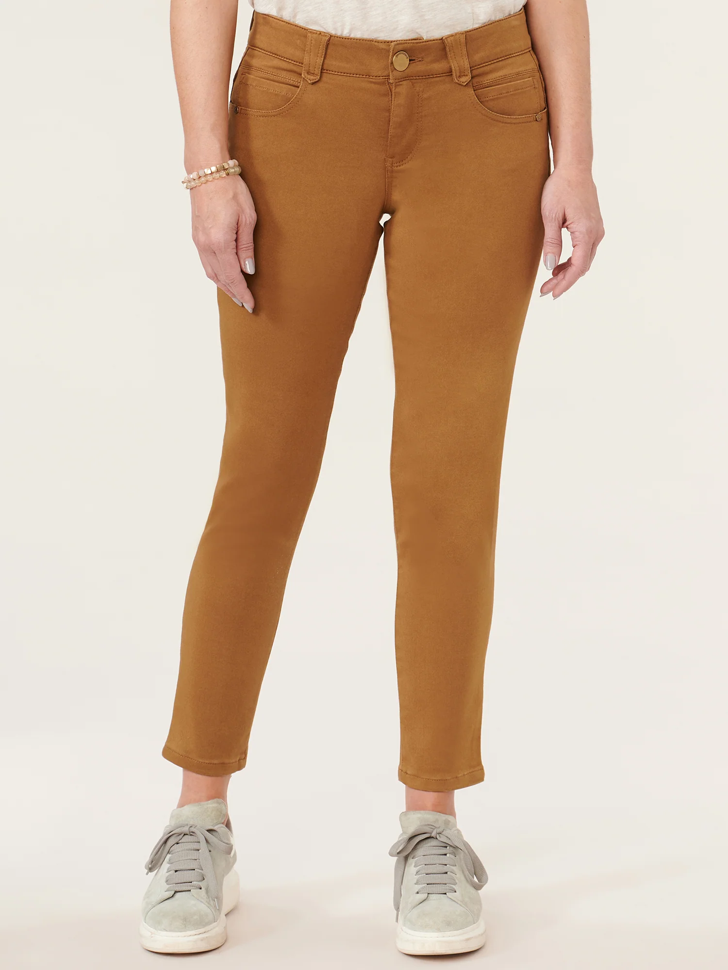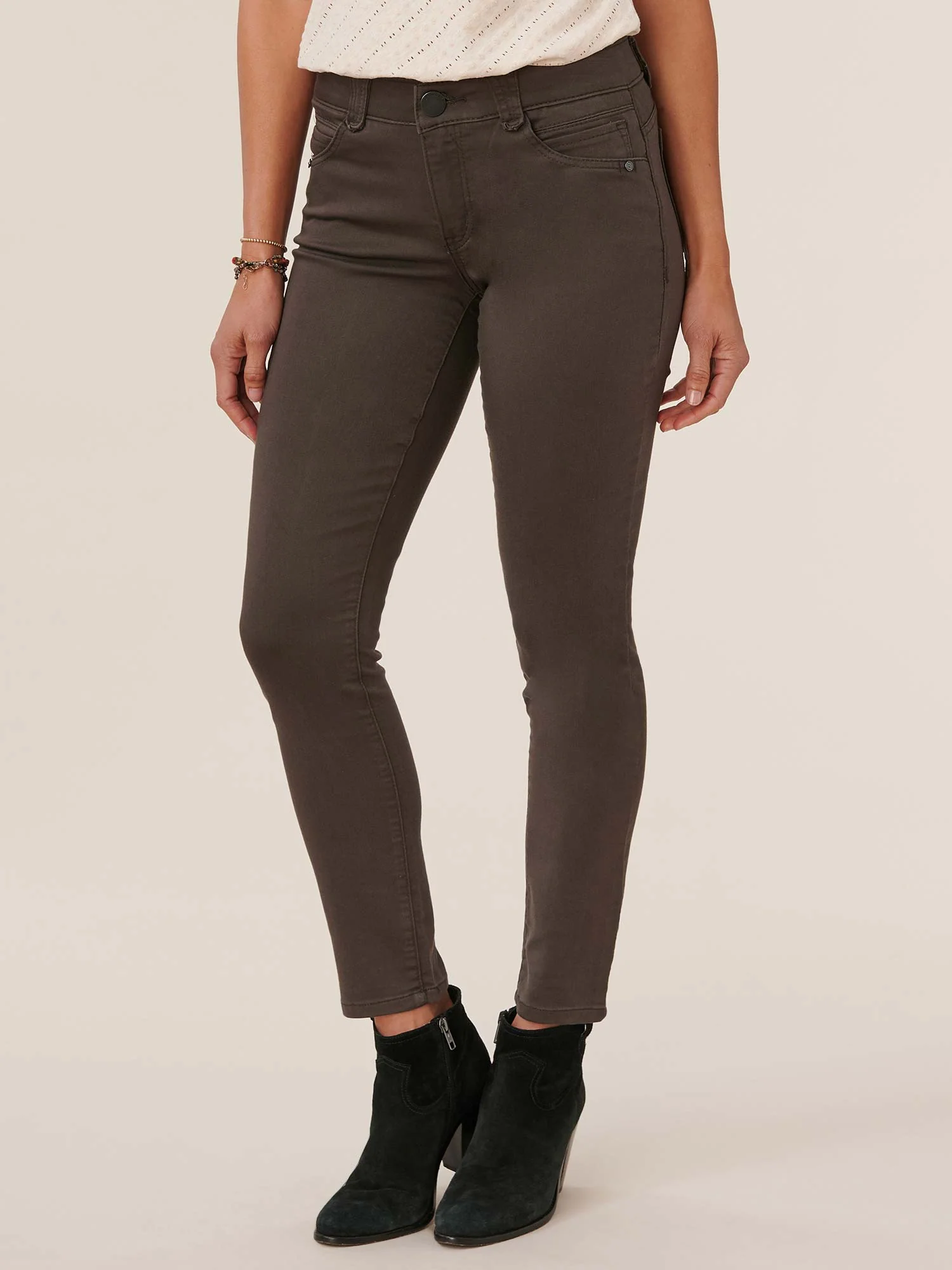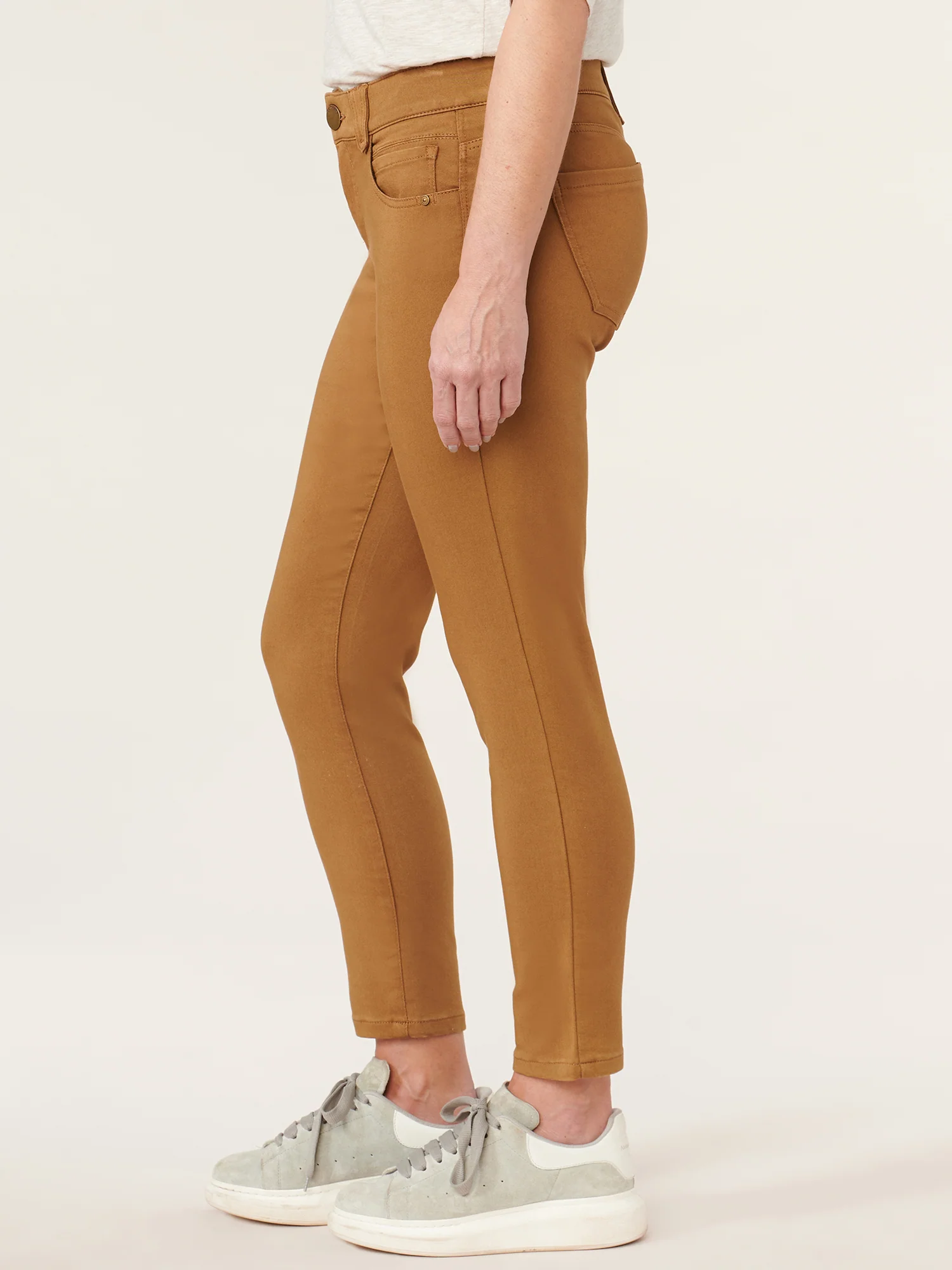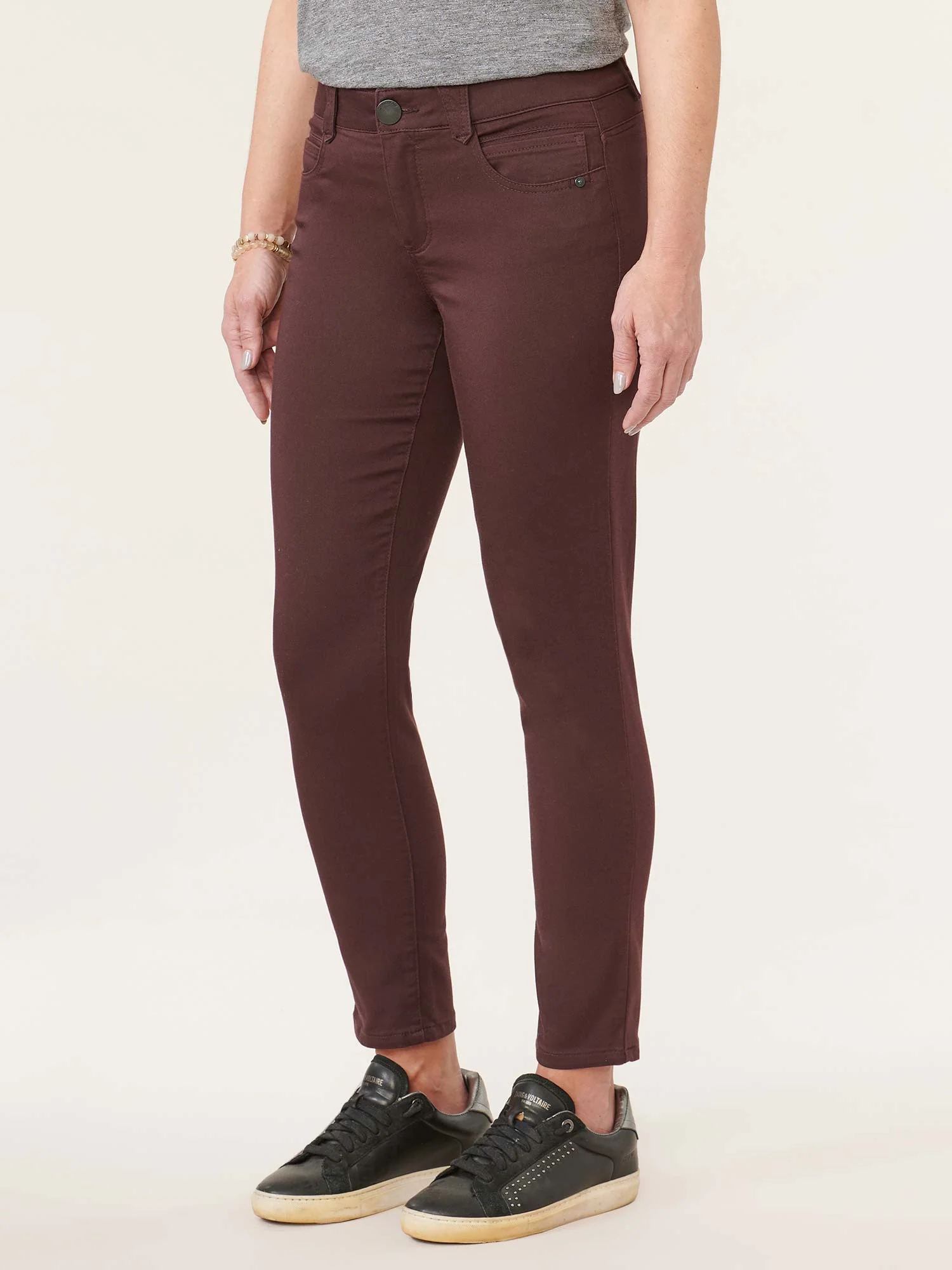 If you ve got the denim blues, a fresh new hue can reinvigorate your whole wardrobe. These Ab solution Ankle Length jeans have a classic skinny silhouette, mid-rise waist, sweetheart shaped back yoke, and they re available in two on-trend colors. With our signature fit technology, they also provide an ultra-flattering fit and all-day comfort with a hidden no gap elastic waistband and premium stretch denim.