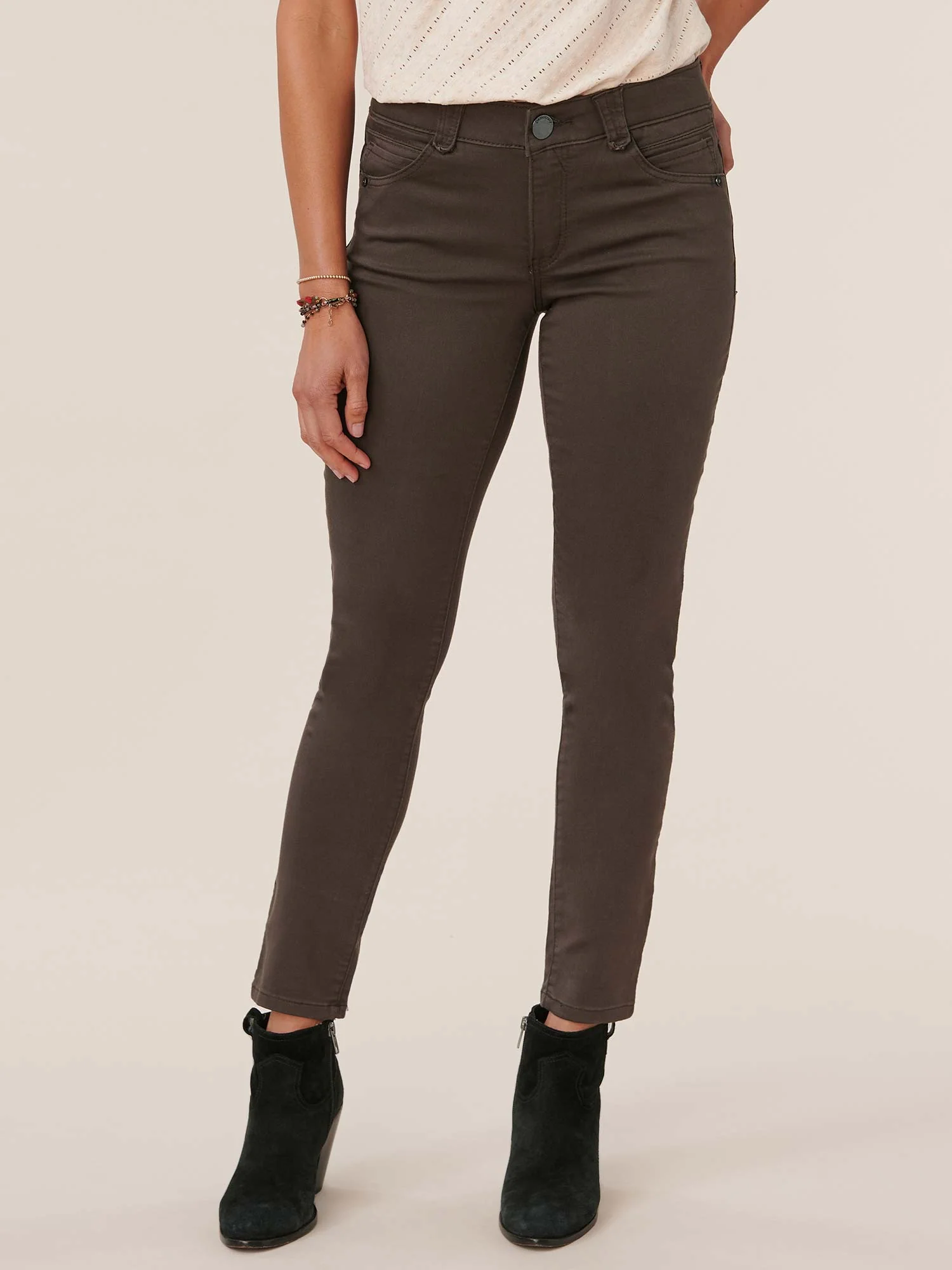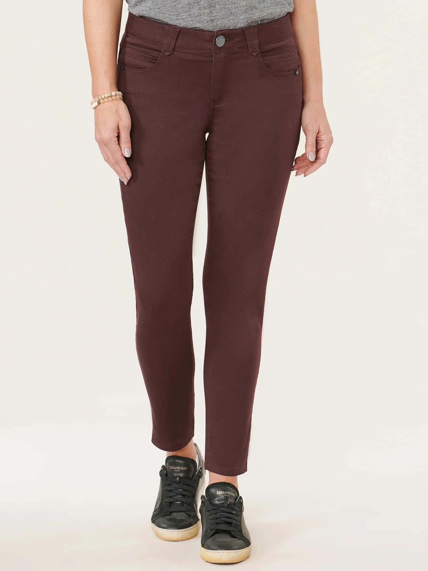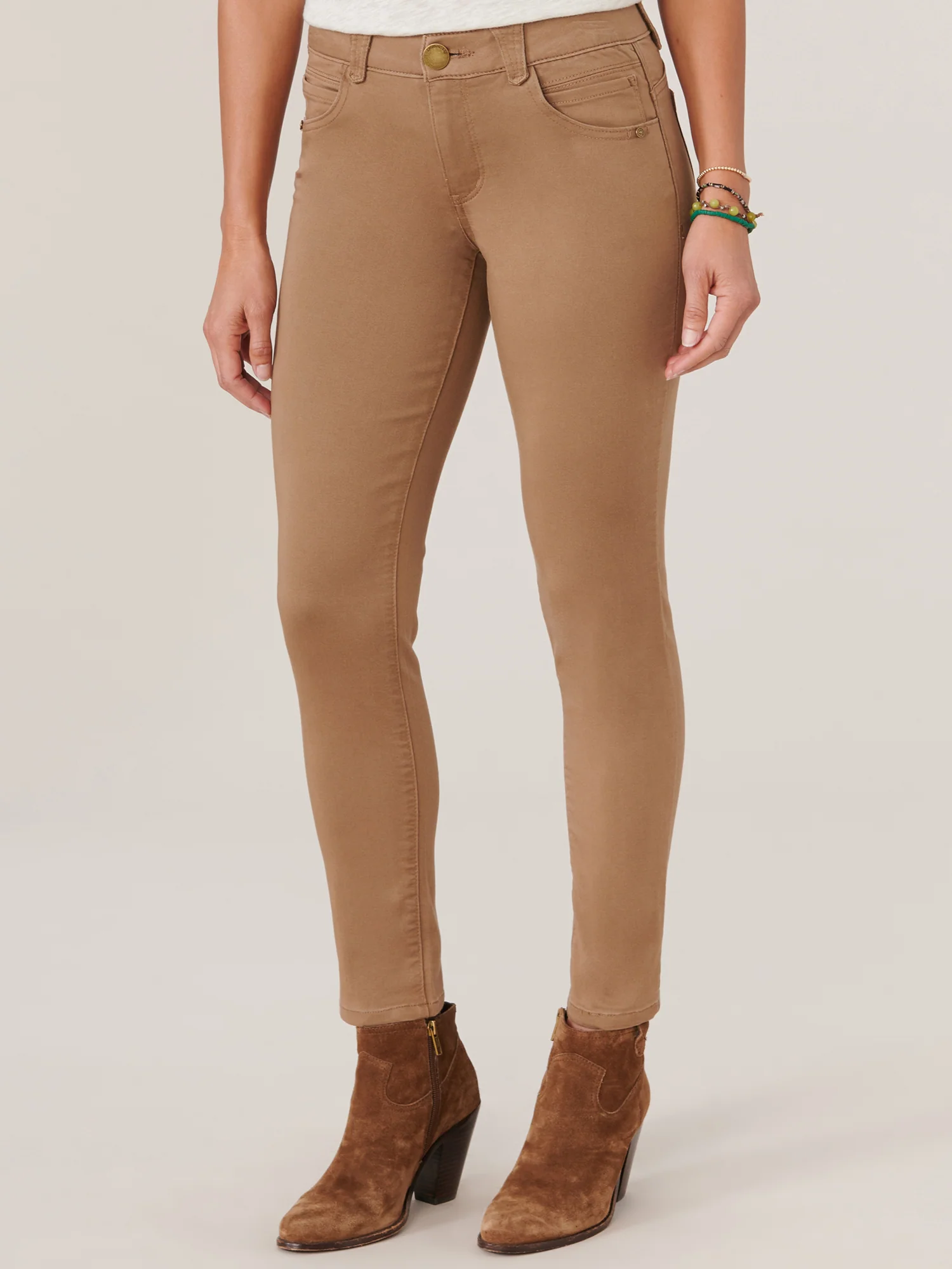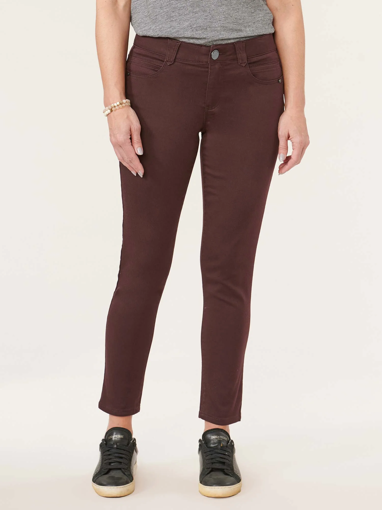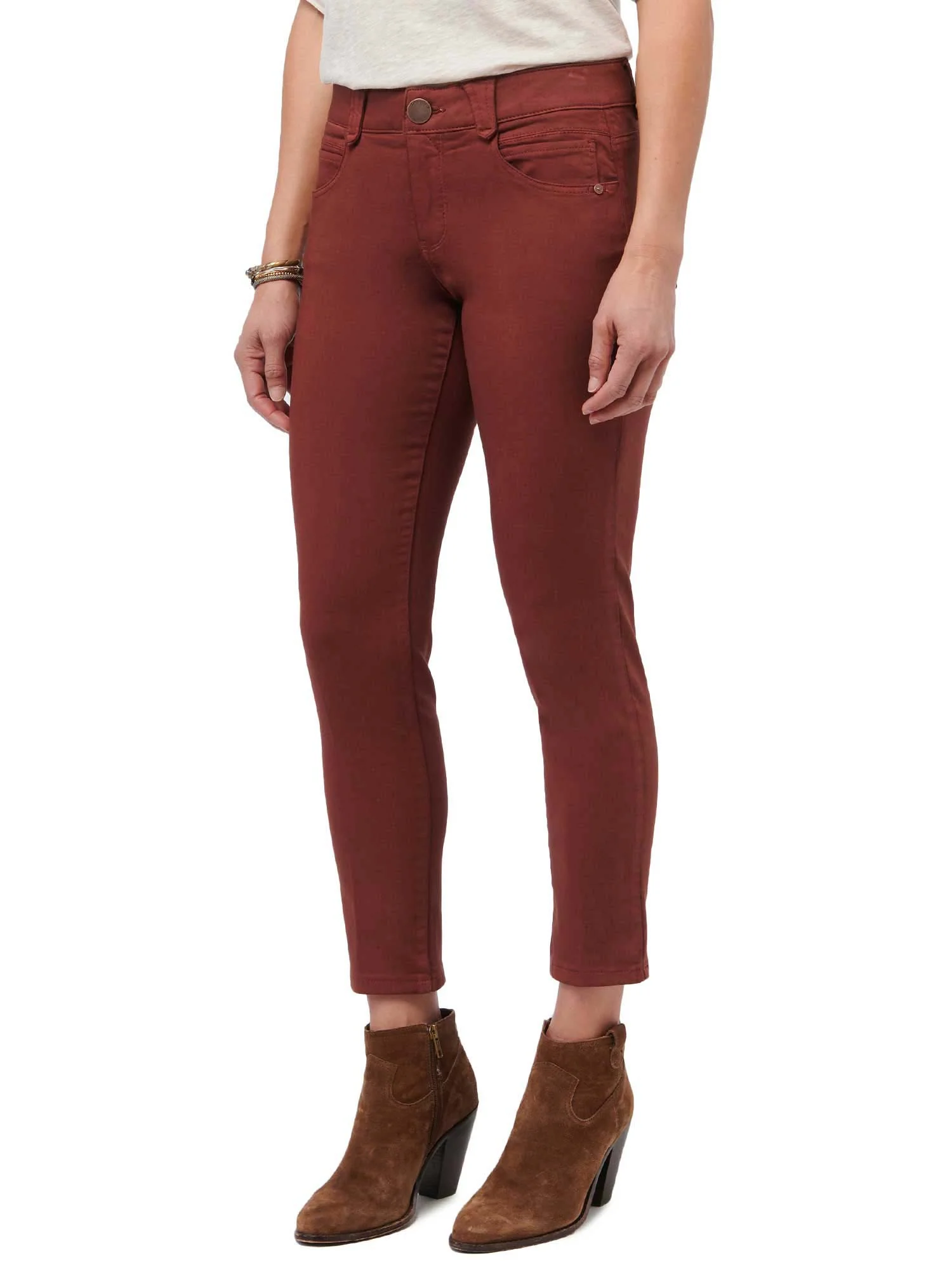 If you ve got the denim blues, a fresh new hue can reinvigorate your whole wardrobe. These Ab solution Ankle Length jeans have a classic skinny silhouette, mid-rise waist, sweetheart shaped back yoke, and they re available in two on-trend colors. With our signature fit technology, they also provide an ultra-flattering fit and all-day comfort with a hidden no gap elastic waistband and premium stretch denim.