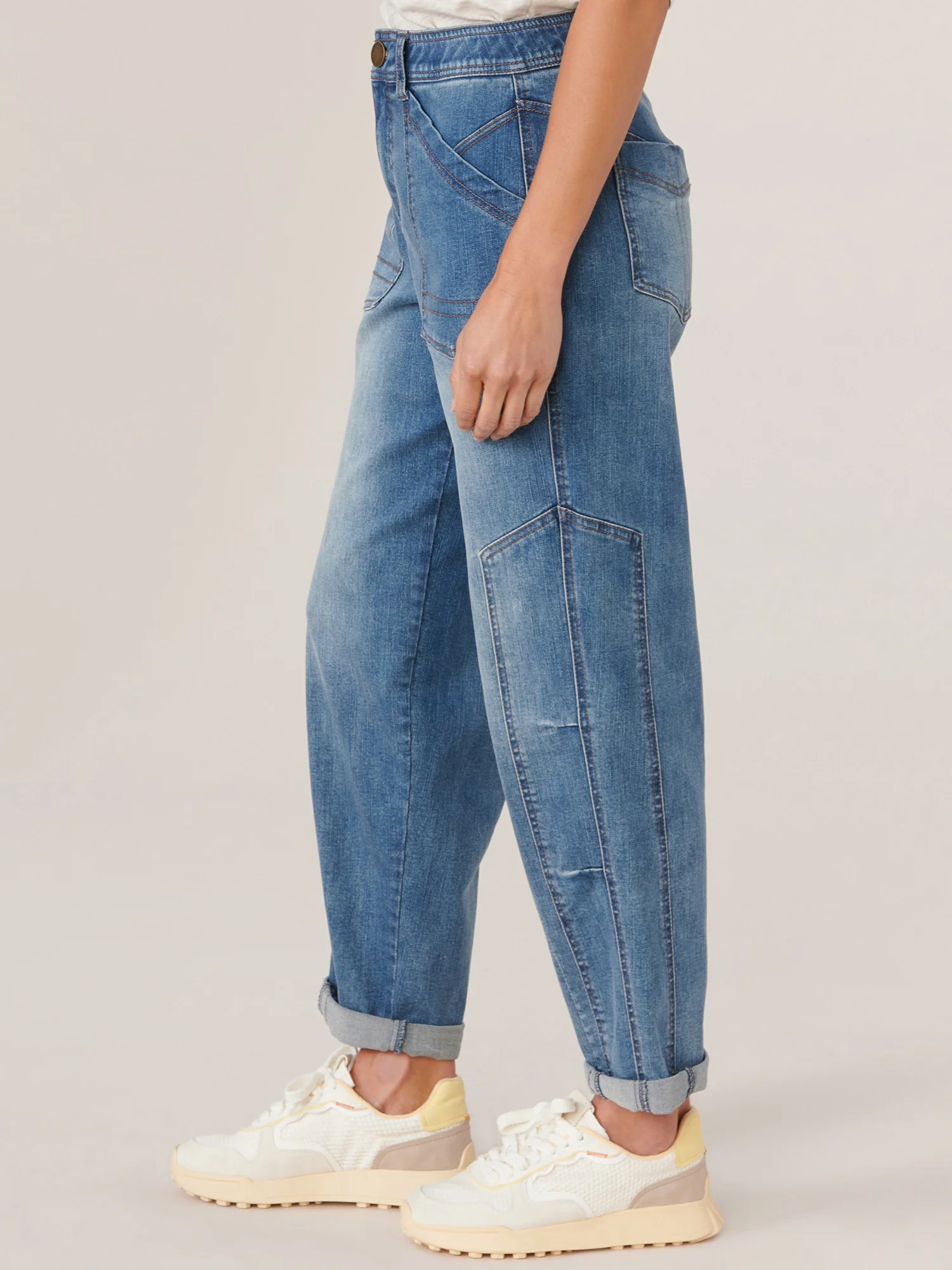 "Ab"solution High Rise Barrel Leg Petite Jeans with Side Panels