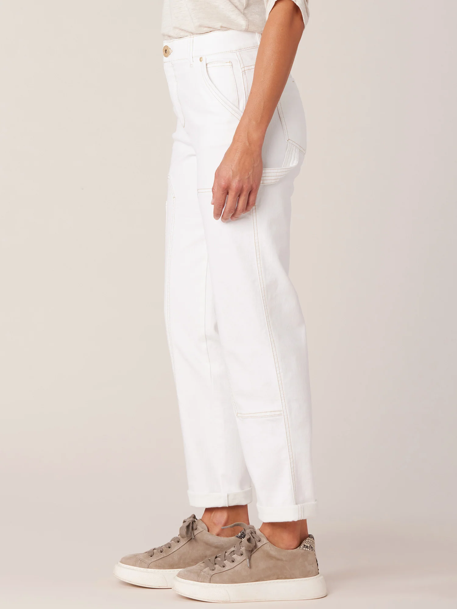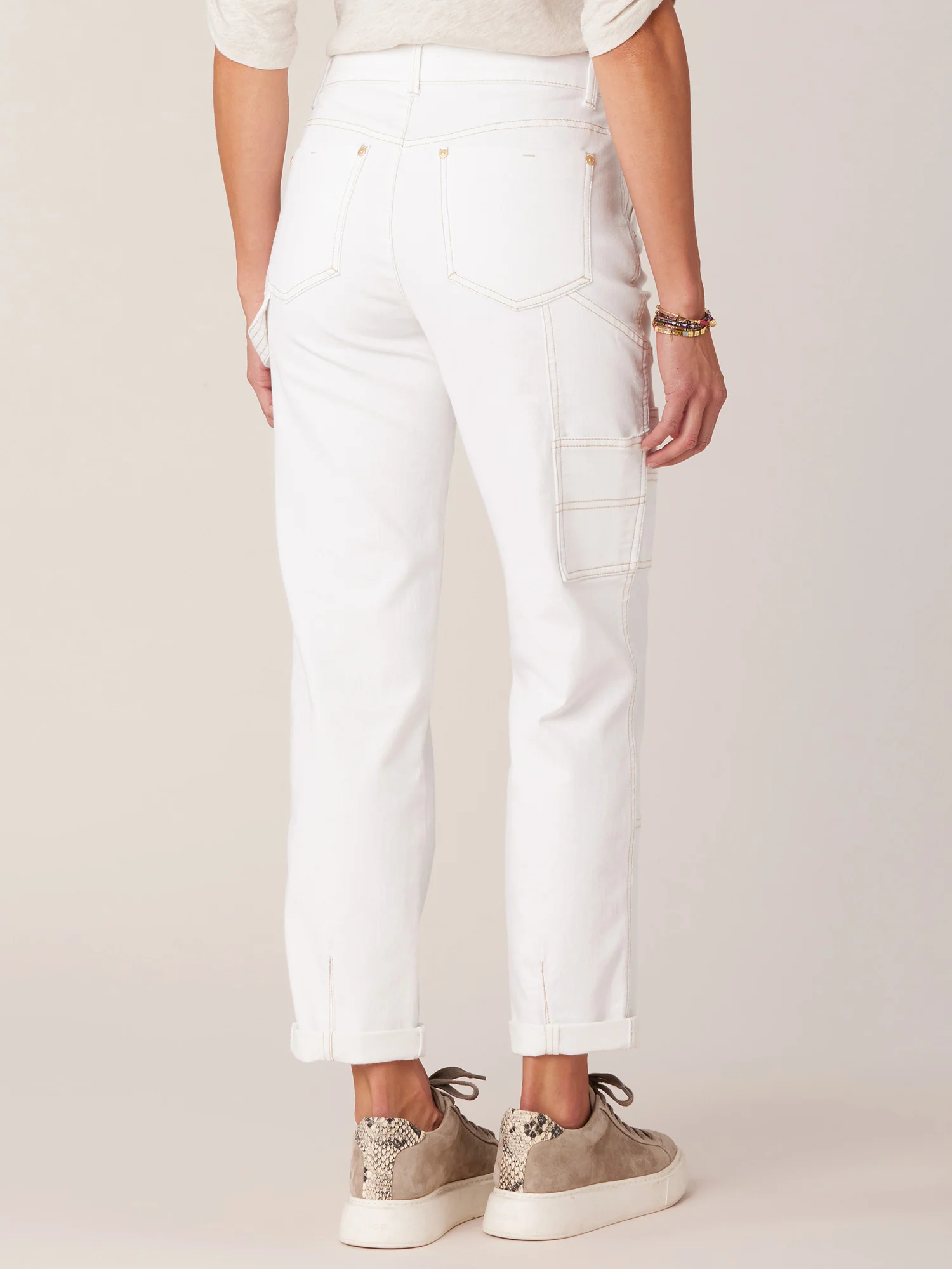 Warmer days are ahead, so lighten up with this chic pair of non-denim Ab solution Utility Pants in a must-have shade of optic white. Featuring contrast seaming, angled front pockets, oversized patch pockets, and a roll cuff hem, these bottoms are comfortable enough to lounge in and stylish enough to wear to dinner.