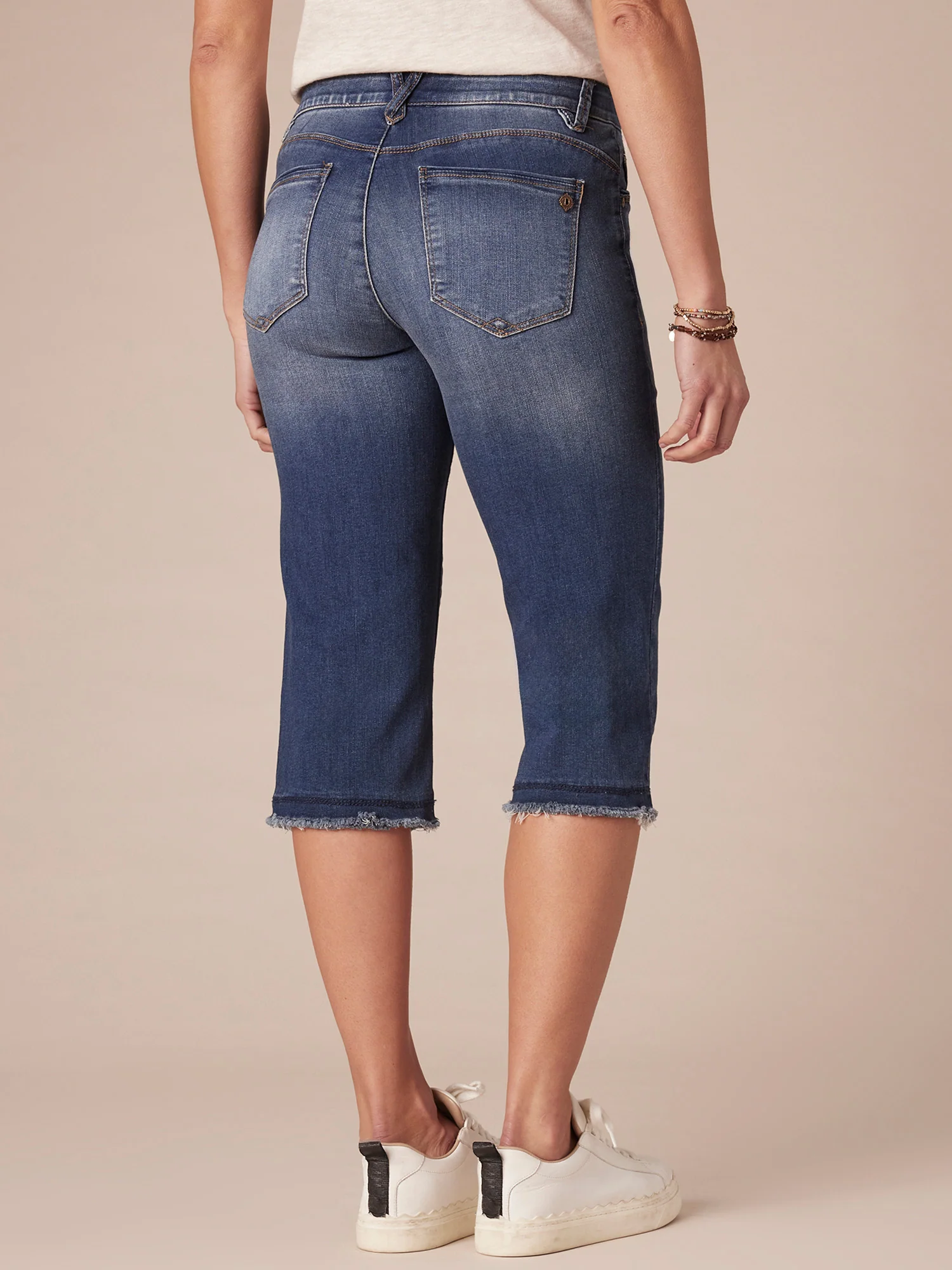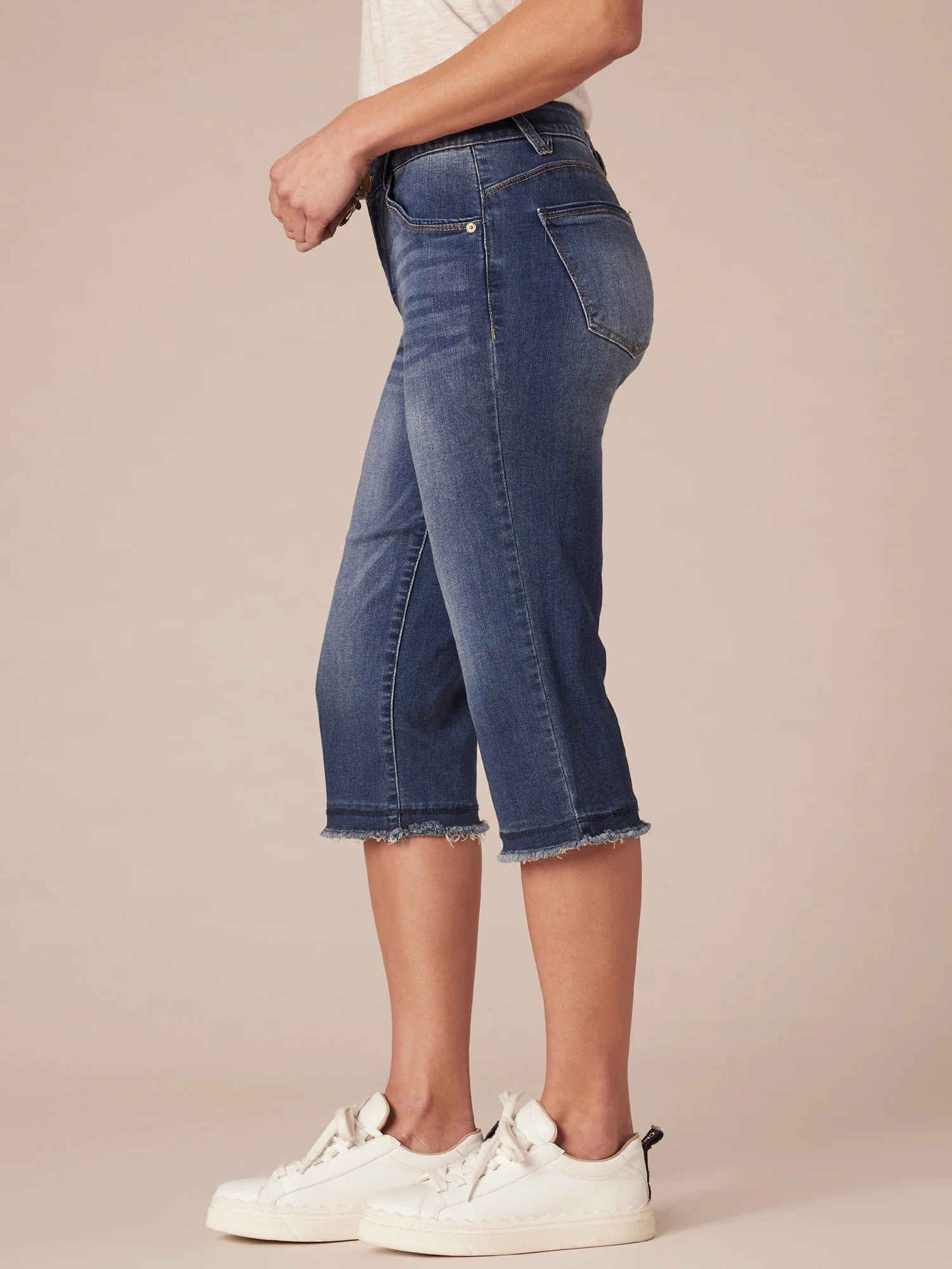 "Ab"solution Blue Denim Fray Hem Capri Skimmer